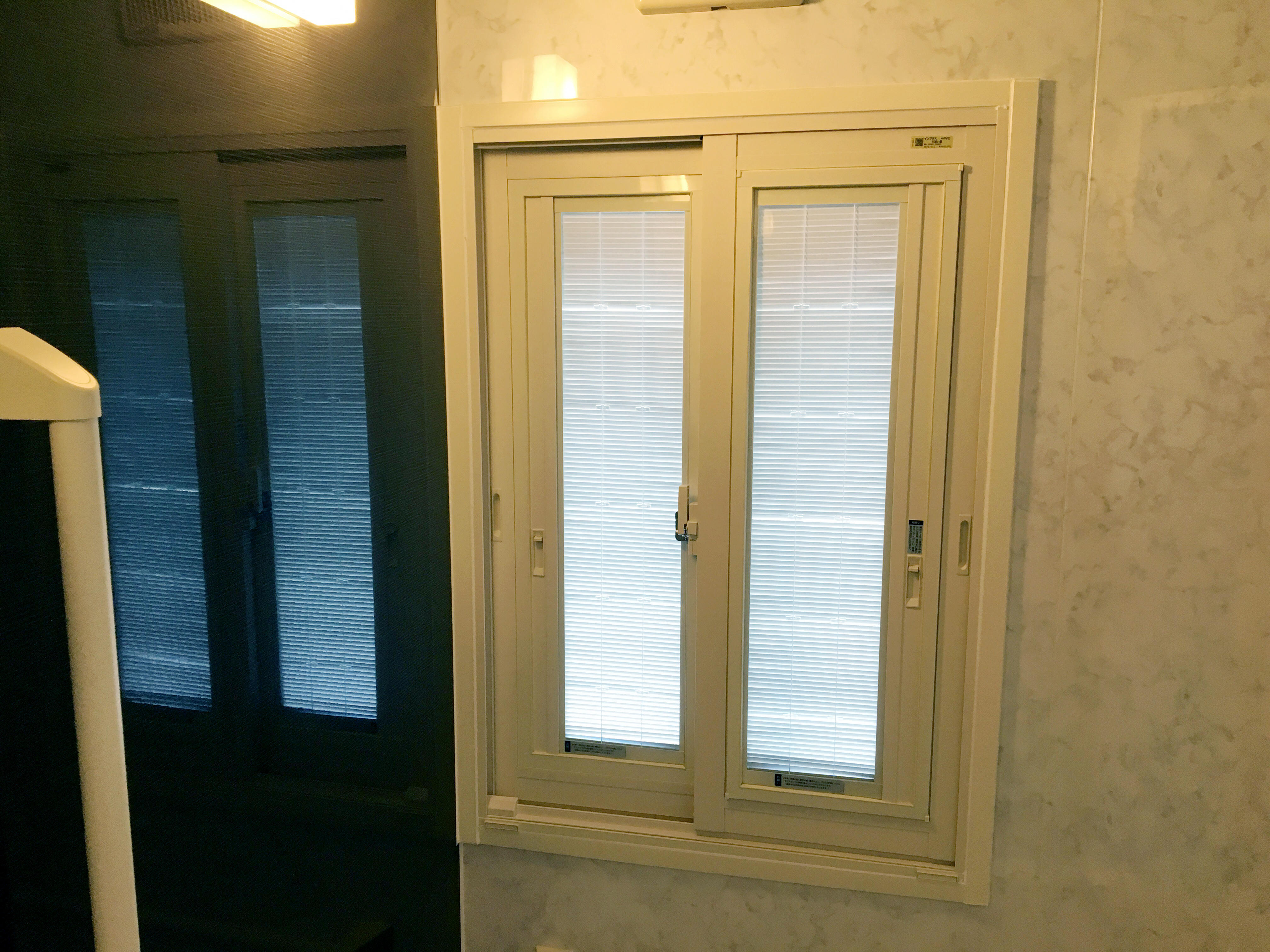 ガラスの間にブラインドが入った窓にリフォーム。プライバシーも暖かさも確保、お手入れもラクチンです。