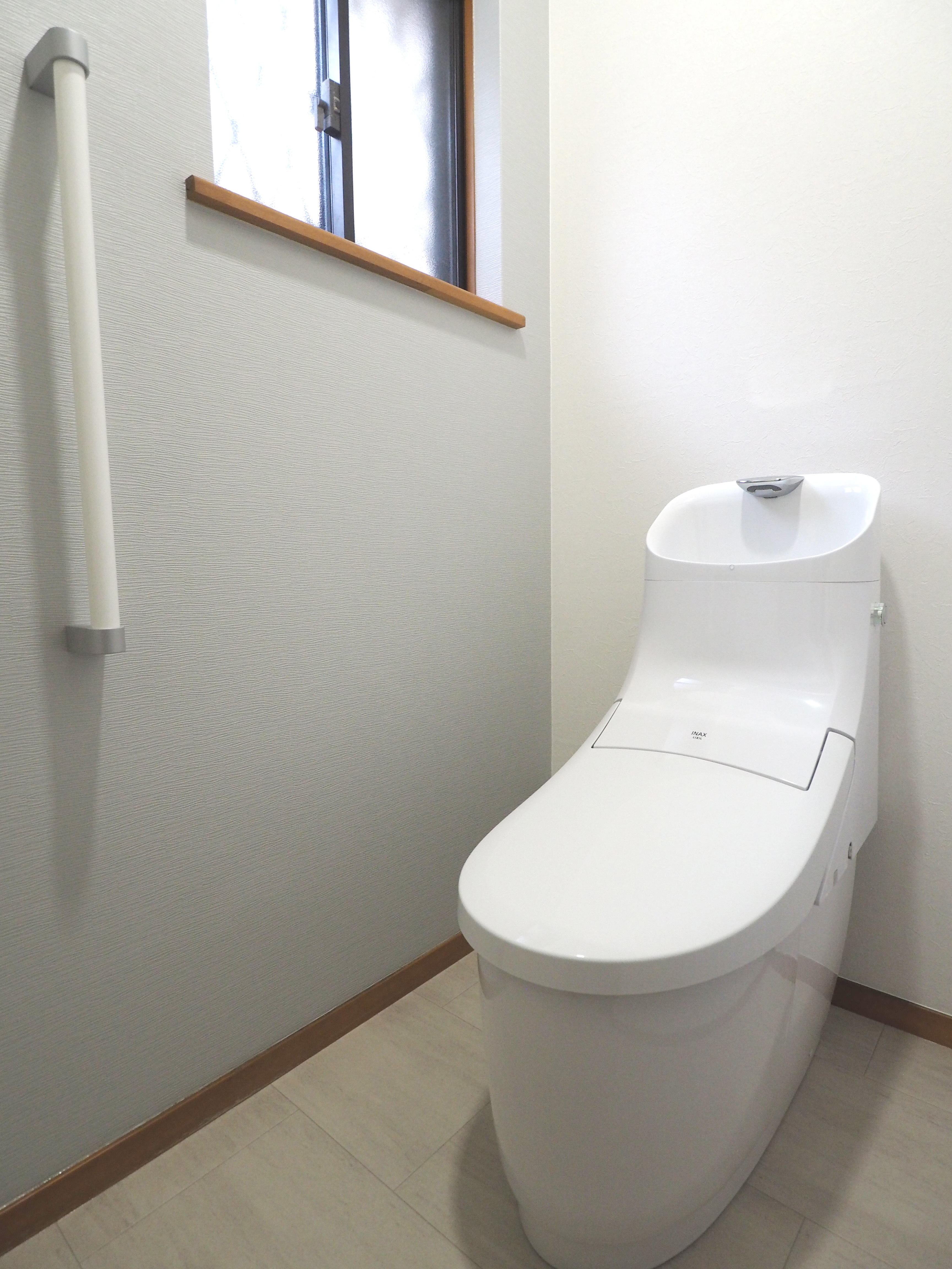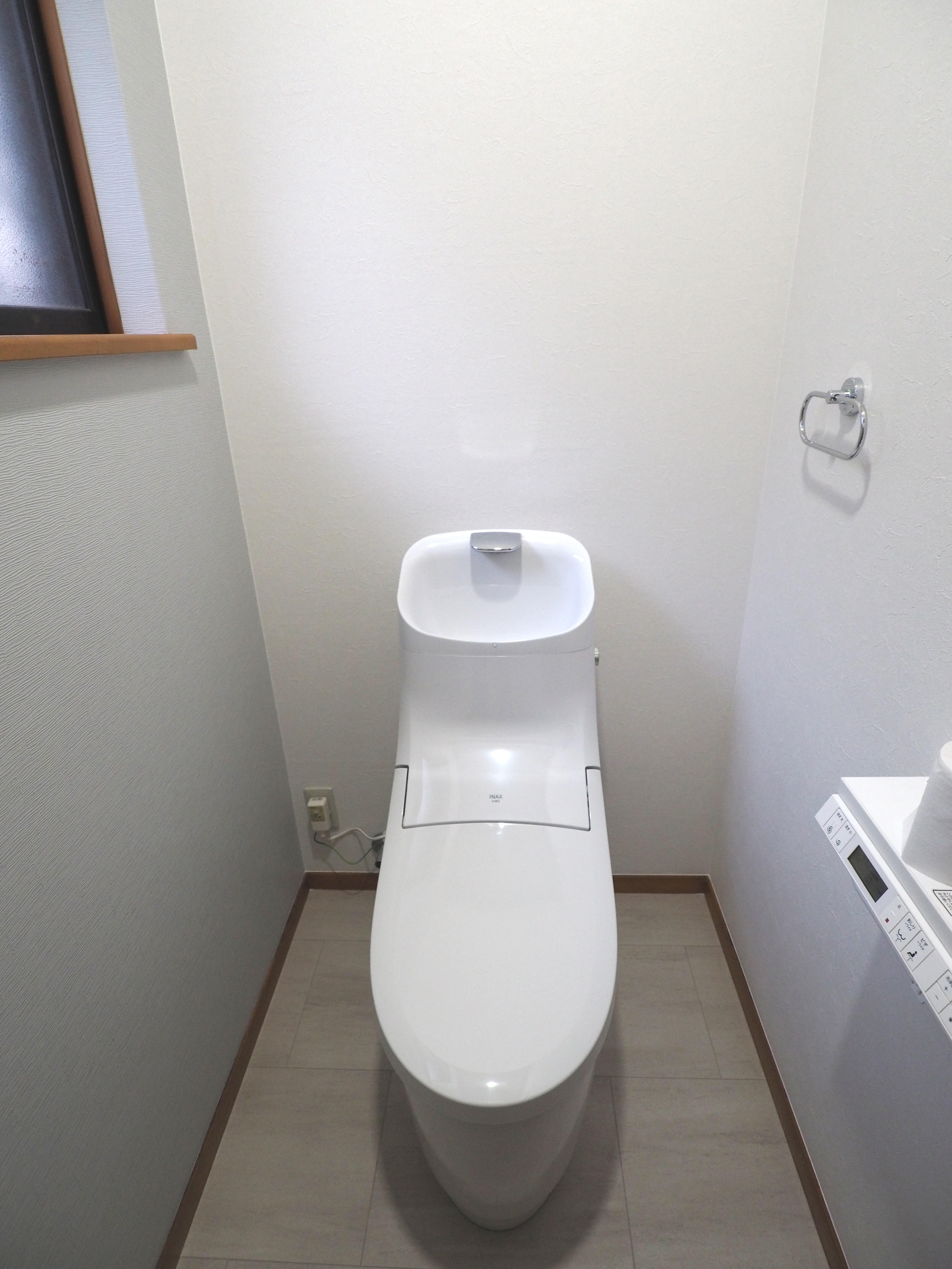 曲線を生かしたデザインのトイレでスッキリしたトイレ空間ができました。国交省の補助金で、次世代住宅ポイントもゲットしました。