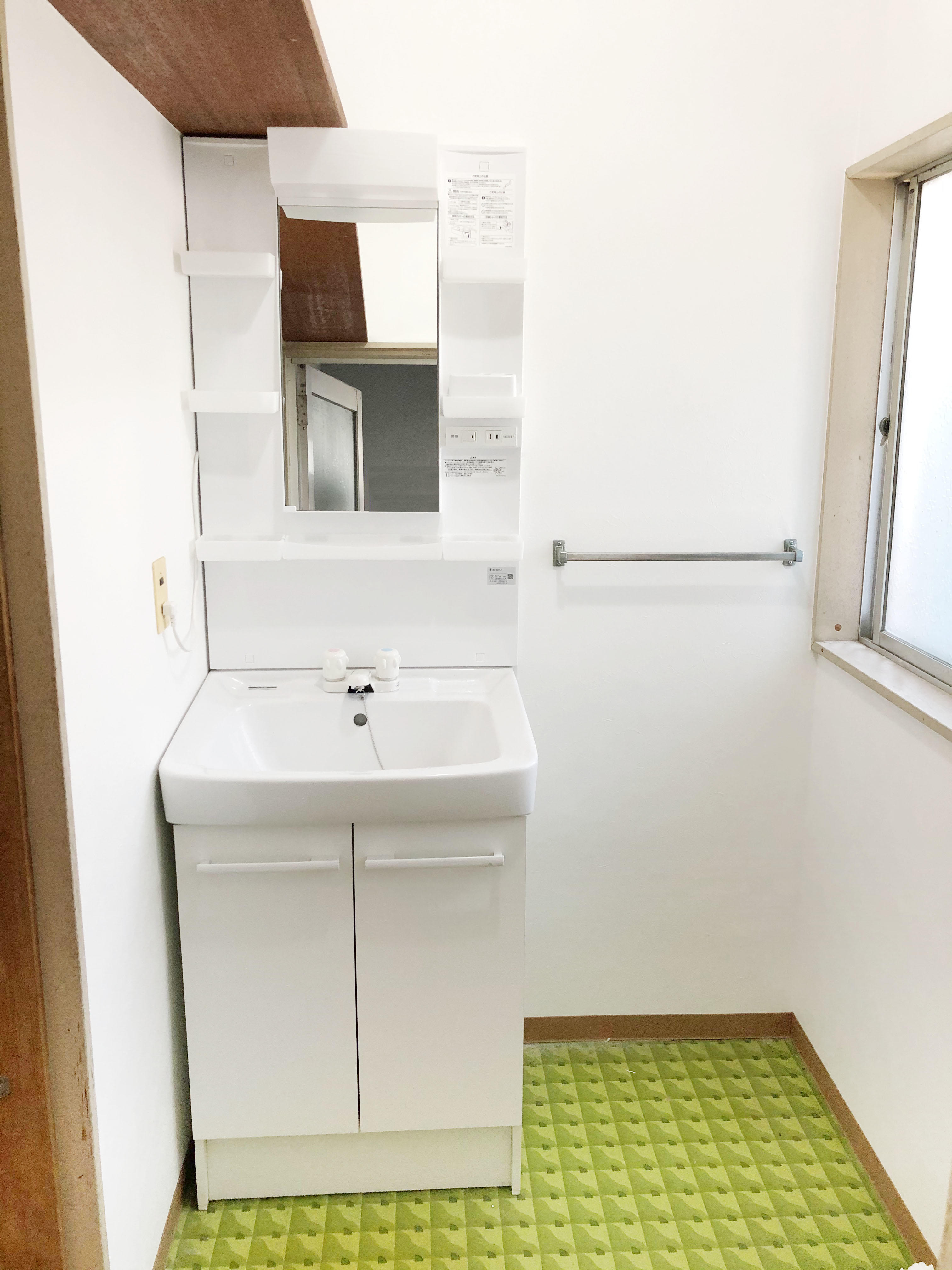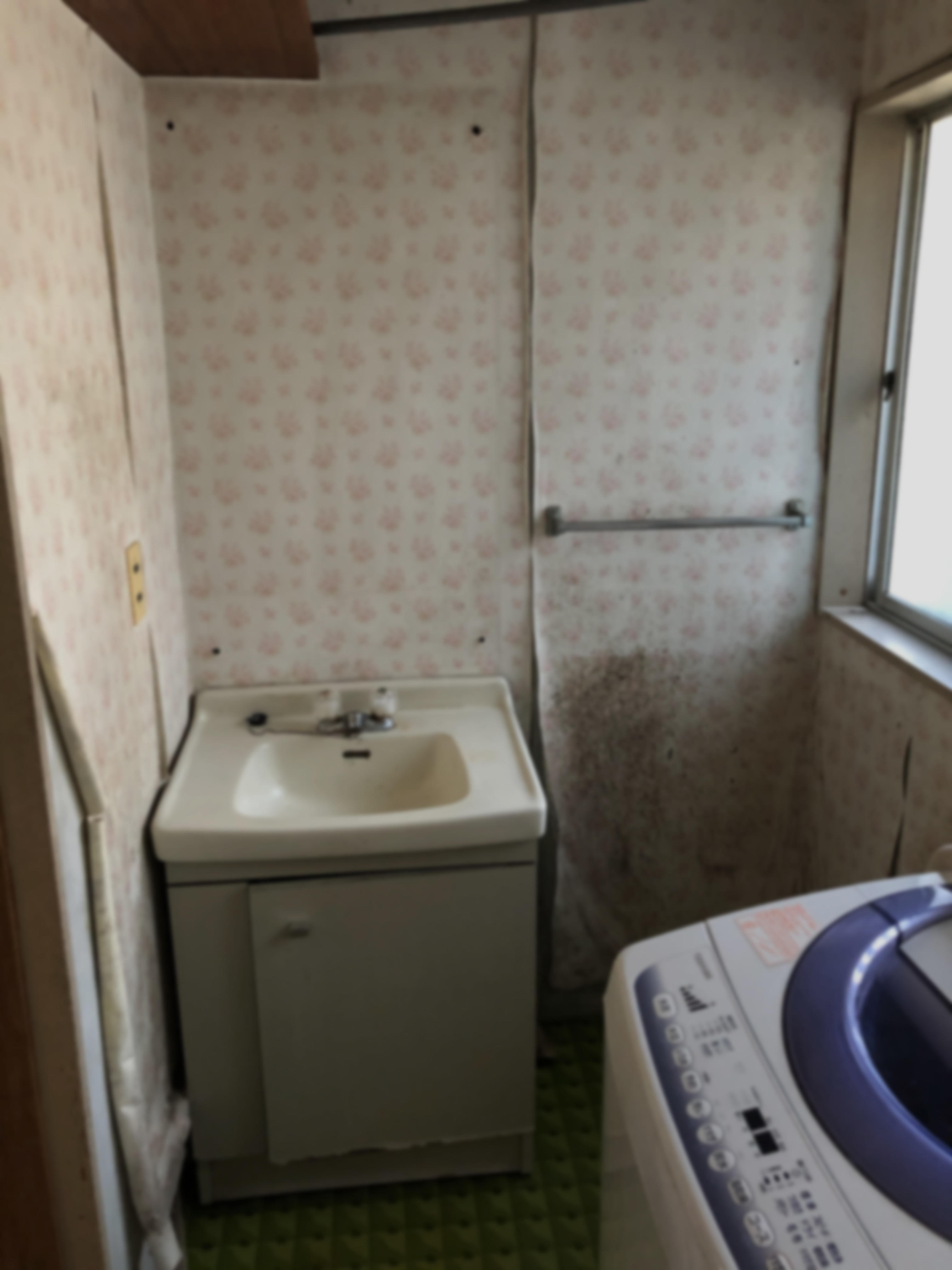 洗面台とあわせて、剥がれている壁紙も貼り替えました。 すっきりと清潔感あふれる洗面室に仕上がりました。