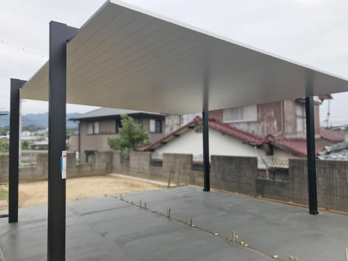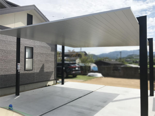 シンプルな美しさを極めたデザインが高く評価された カーポートを設置。 屋根と柱だけのシンプルなデザインなので、 住宅によく馴染んでいます。