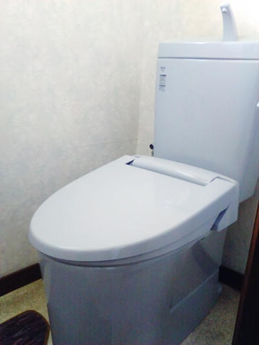 トイレの水漏れをきっかけに 入れ替えリフォームされることになりました。 カラーはブルーグレーを採用しております。