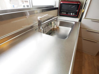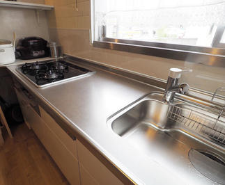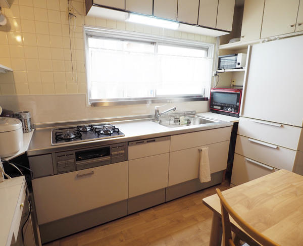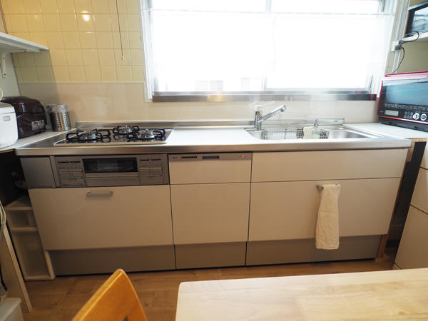 公団用キッチンからシステムキッチン(LIXIL/シエラ)に変わり、 お料理がしやすいスペースが確保されました。 来客の多いご家庭なので、 食洗器を設置し、家事ラクを実現させました。 既設の収納に馴染み、すっきりとした空間ができました。