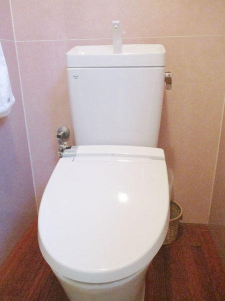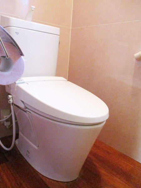 トイレの水漏れをきっかけに 新しくトイレを入れ替えいたしました。 シンプルで使いやすく、掃除もラクラク「アメージュZ」を採用。 紙巻器やタオルリングもシンプルなものを選びました。