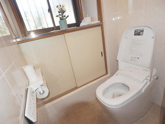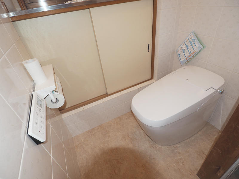 もともと和式だったトイレを洋式トイレに変え、 手前にあった小便器スペースには、 手洗い洗面スペースを新たに設けました。 洗面周りにはエコカラット(デザイン壁材)を貼り付け、 いやな匂いをぱっと脱臭してくれます。
