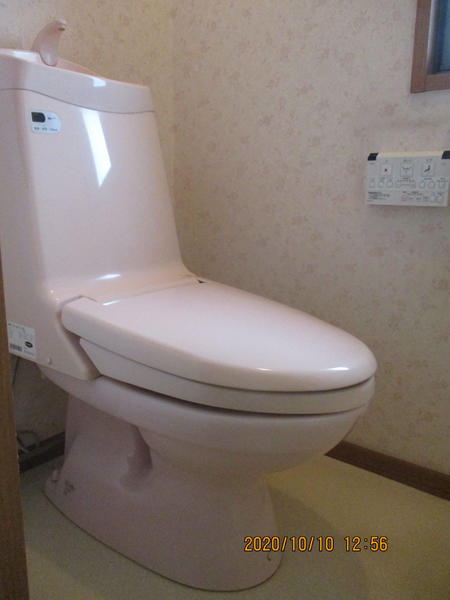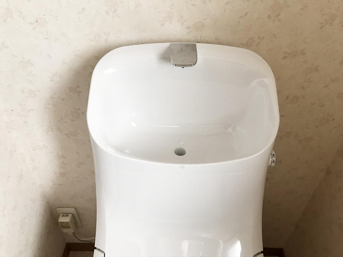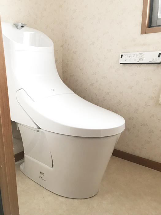 トイレ入れ替えリフォームを行いました。 広くて深い手洗鉢が特長のアメージュZAを採用。 自動水栓の手洗い器も設置いたしました。