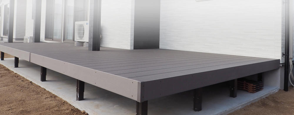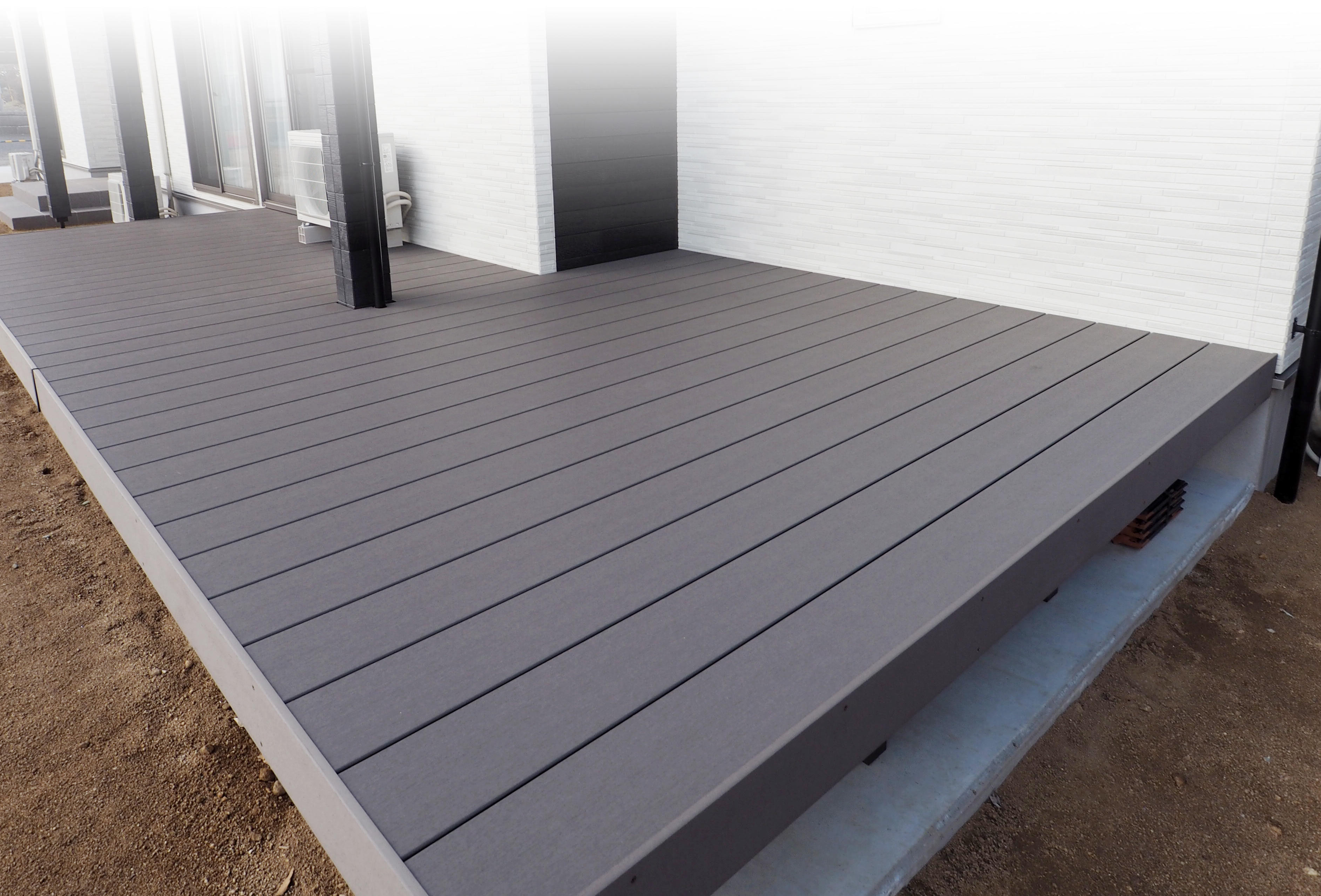 美しい木の色が長持ちし、リアルに木質感が表現された人工木材のウッドデッキです。 シロアリにも強く、表面温度も熱くなりにくい メンテナンスがほとんど不要の優れた木材を使用しております。