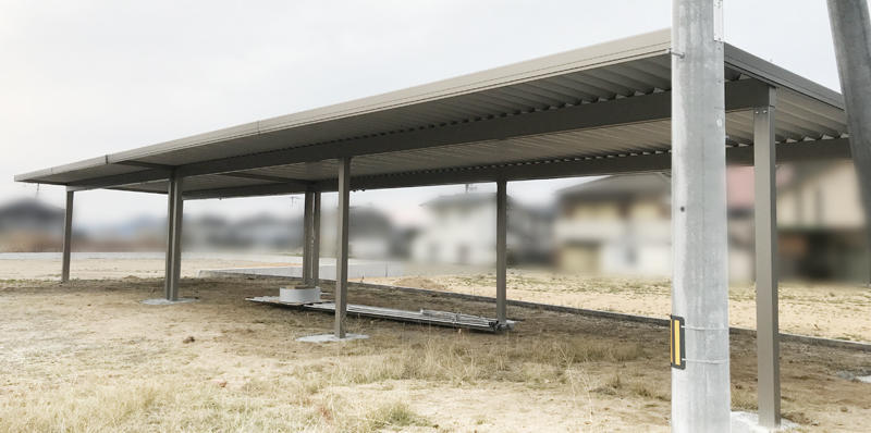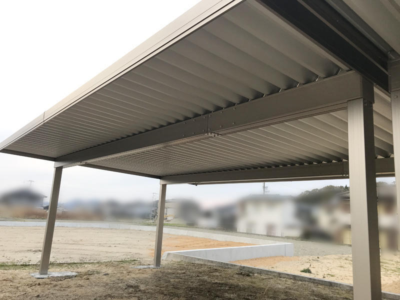7台用のカーポートを新たに設置いたしました。 台風にも負けない、風圧性能が特徴の リクシルのカーポート「テリオスポート」を採用しております。