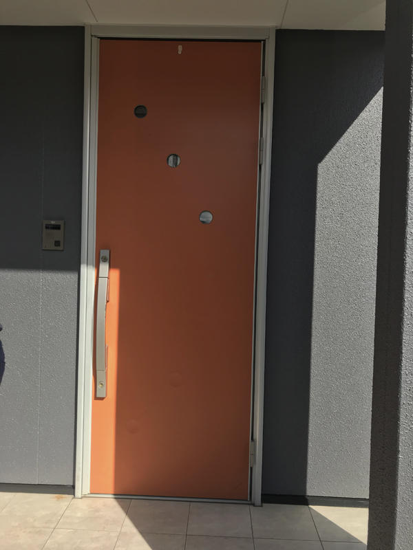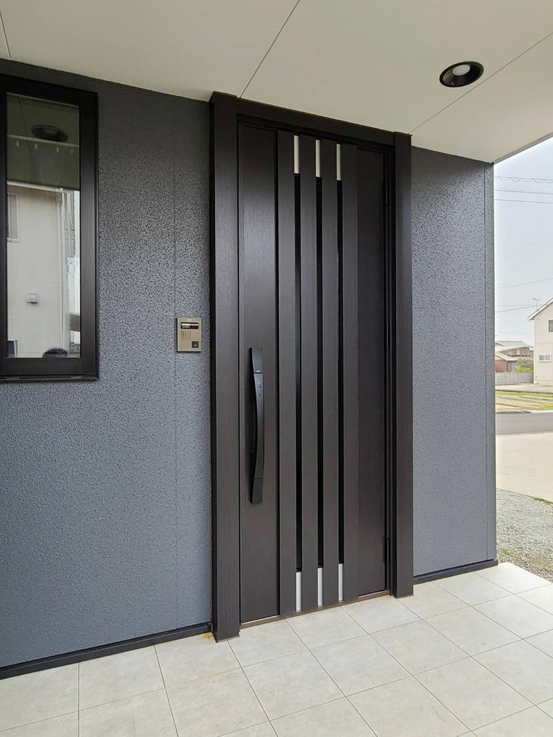 家によく馴染み落ち着いたモダンなデザインの玄関ドアを採用。 断熱性に優れ、またタッチキーで、ボタンを押すだけでラクラク開錠できます。