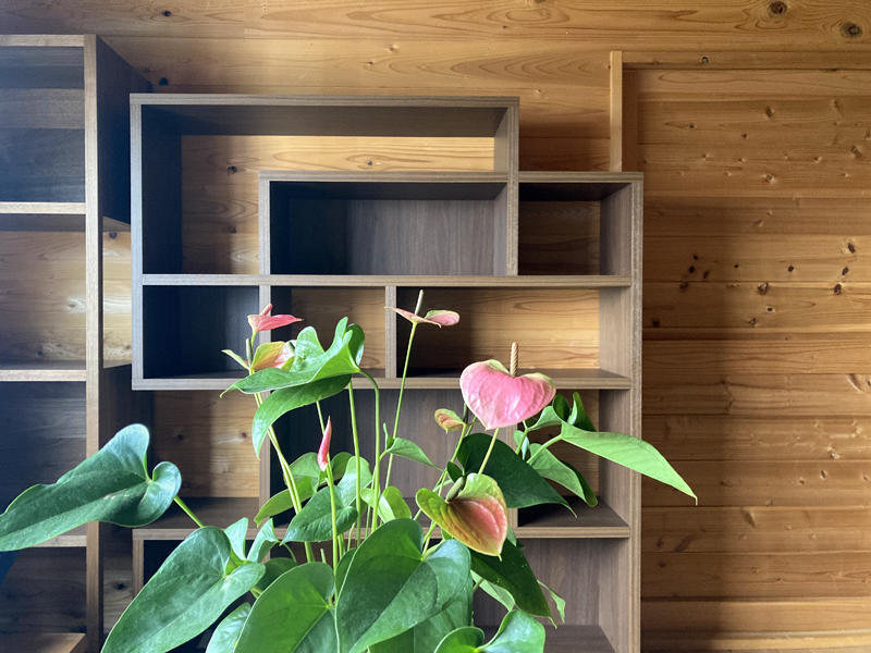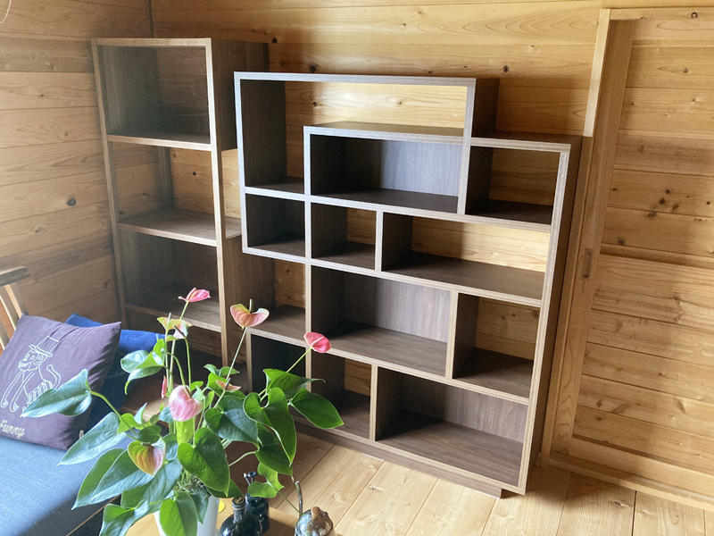 デザイン性抜群の変則的なシェルフ(収納棚)で、