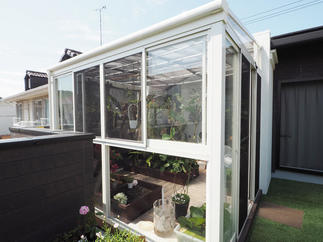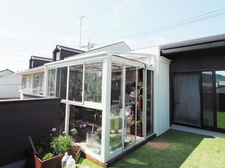 サンルームの活用法は無限大! 2解のベランダにサンルームを設置し、 グリーンをたのしむ趣味部屋が実現しました。