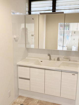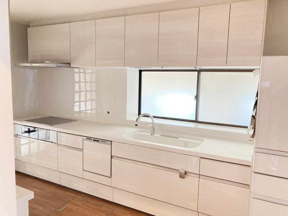 水廻りを一新!上品で清潔感のある水廻りとなりました。 広々としたキッチンにはたくさん収納を設け、すっきりとしたダイニングとなりました。