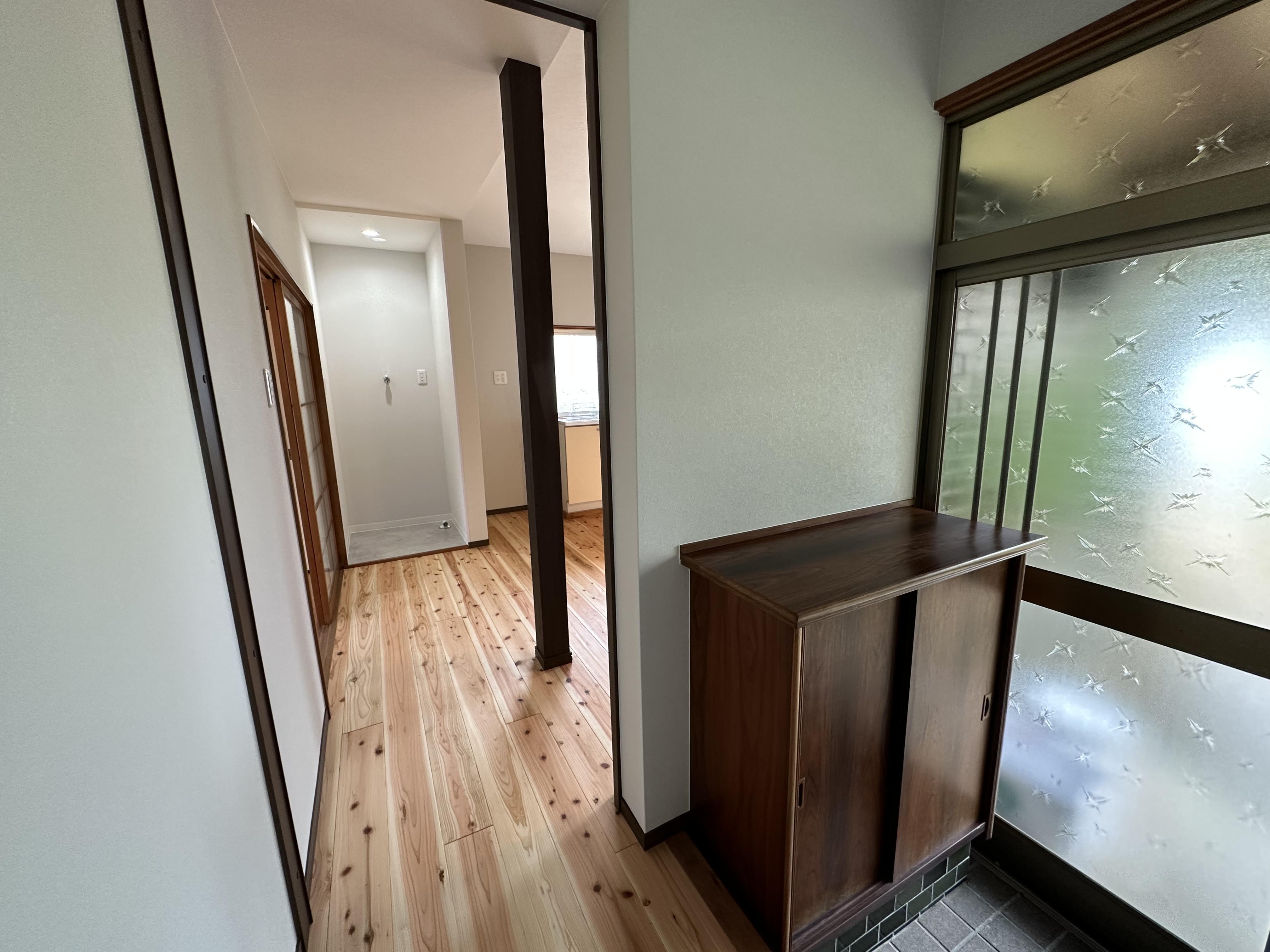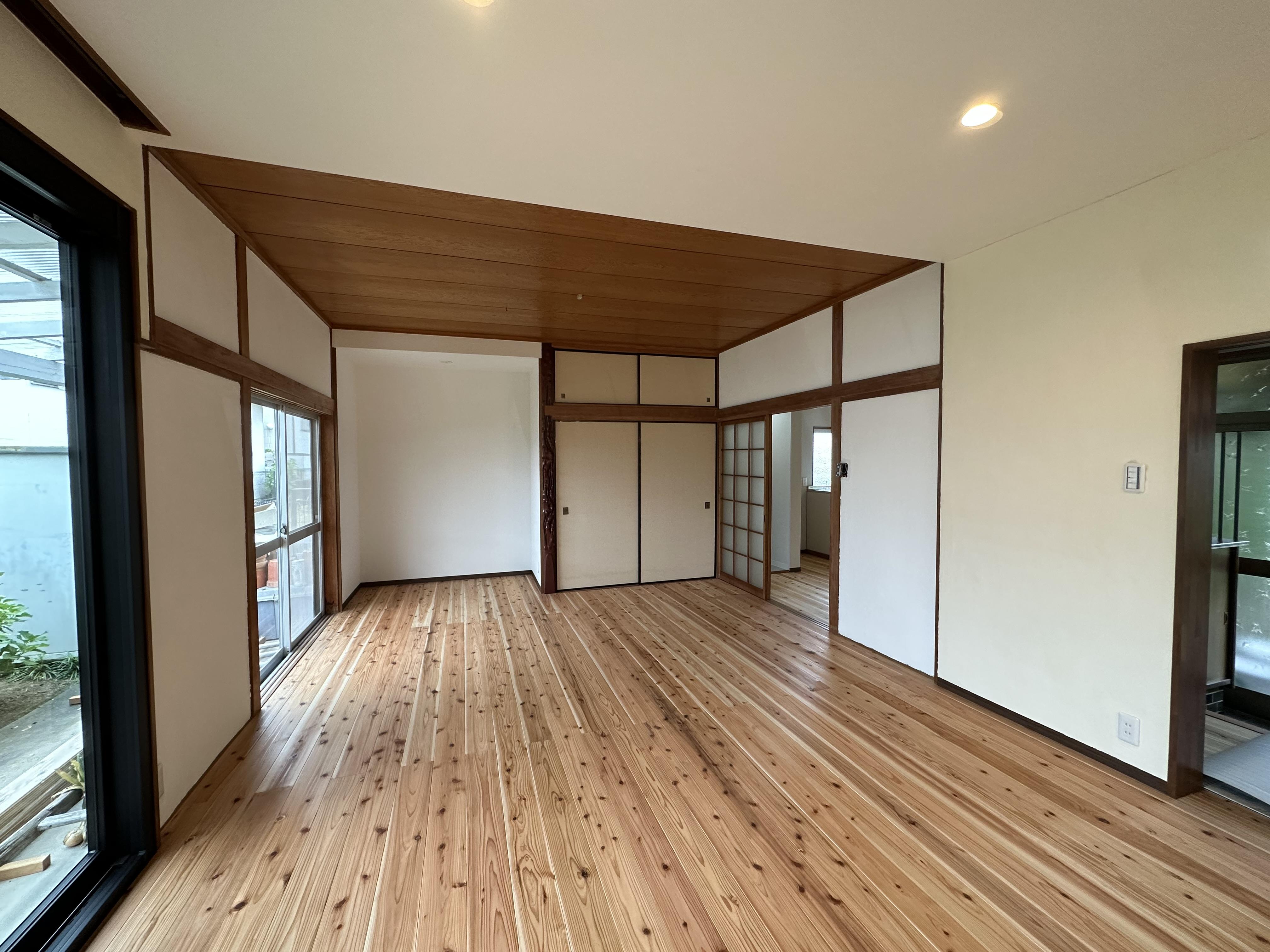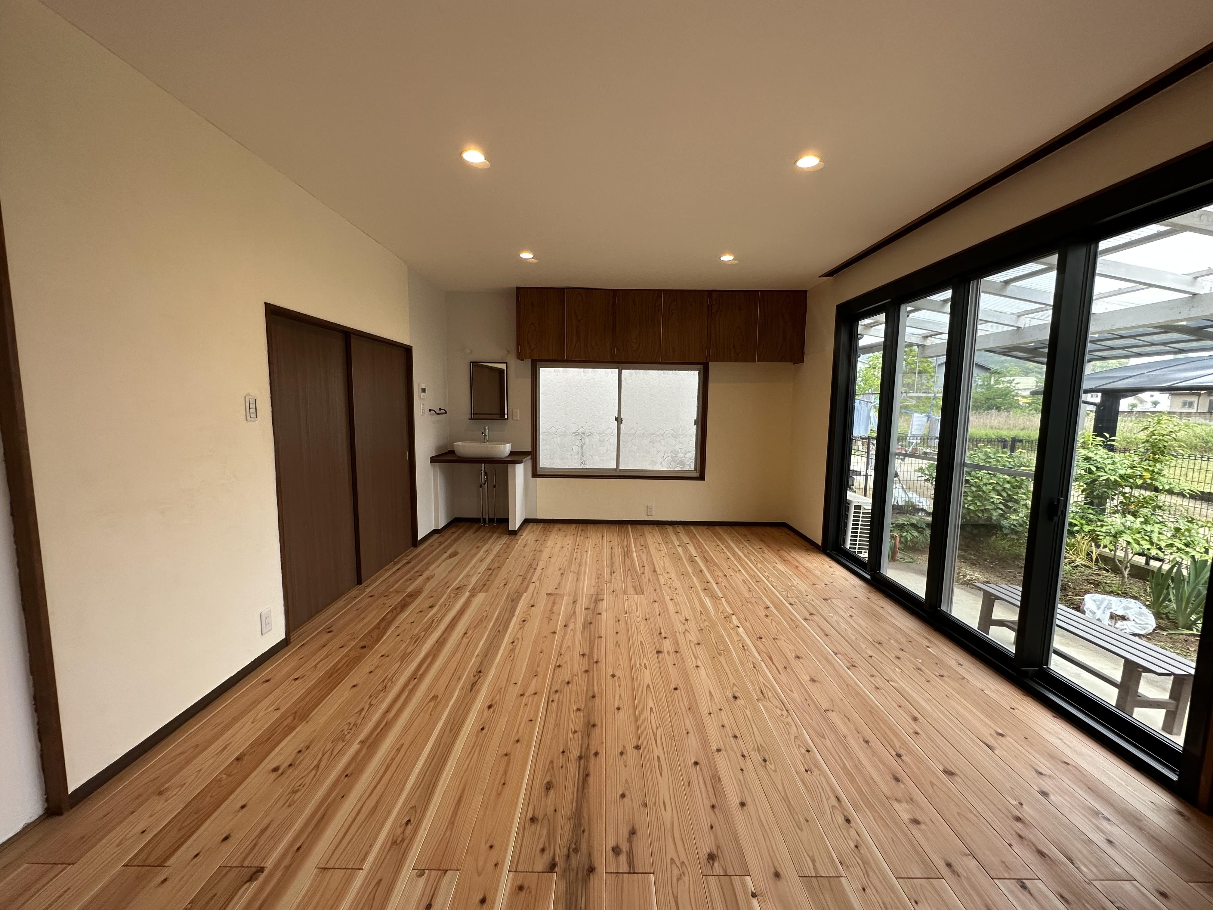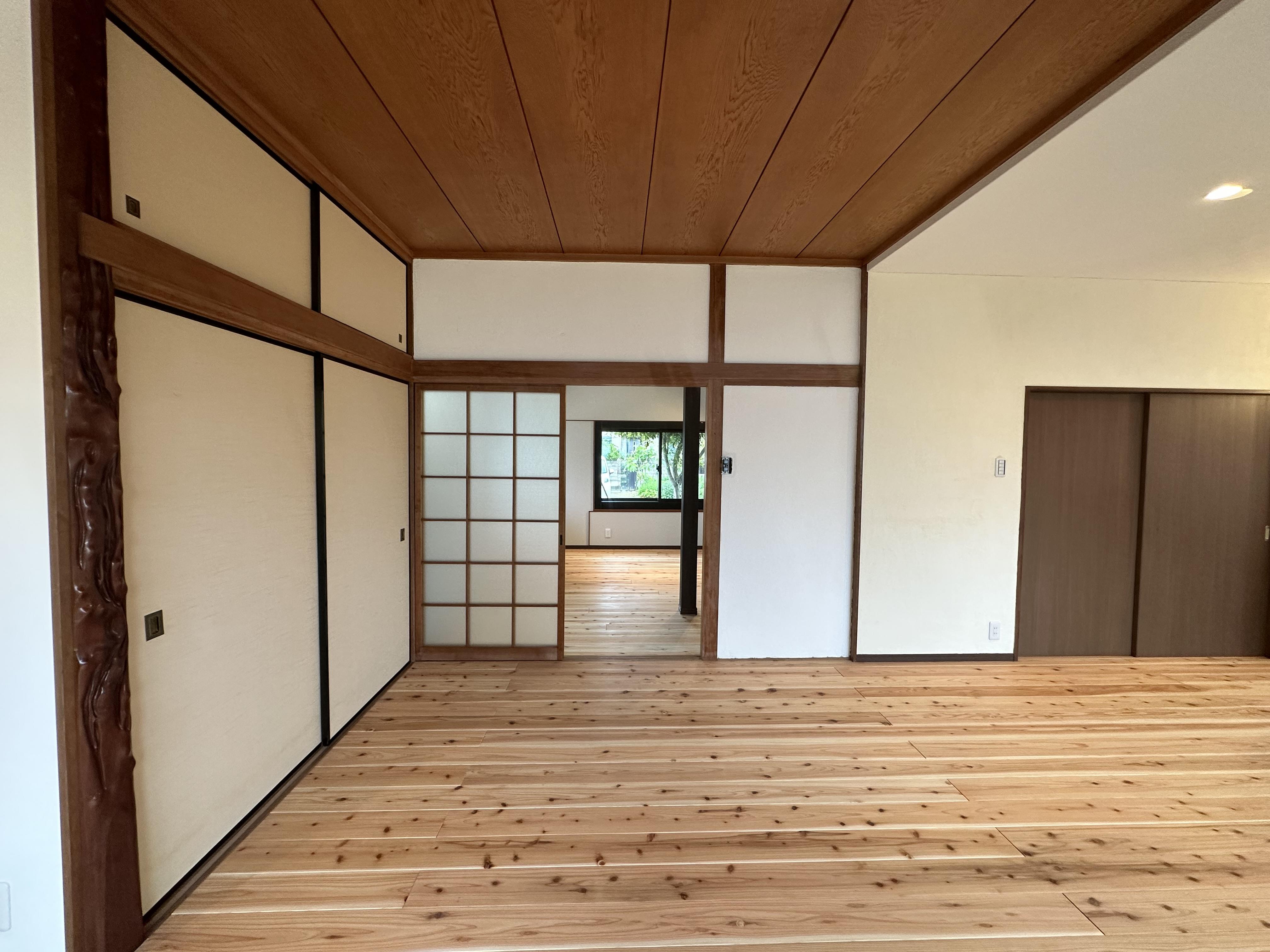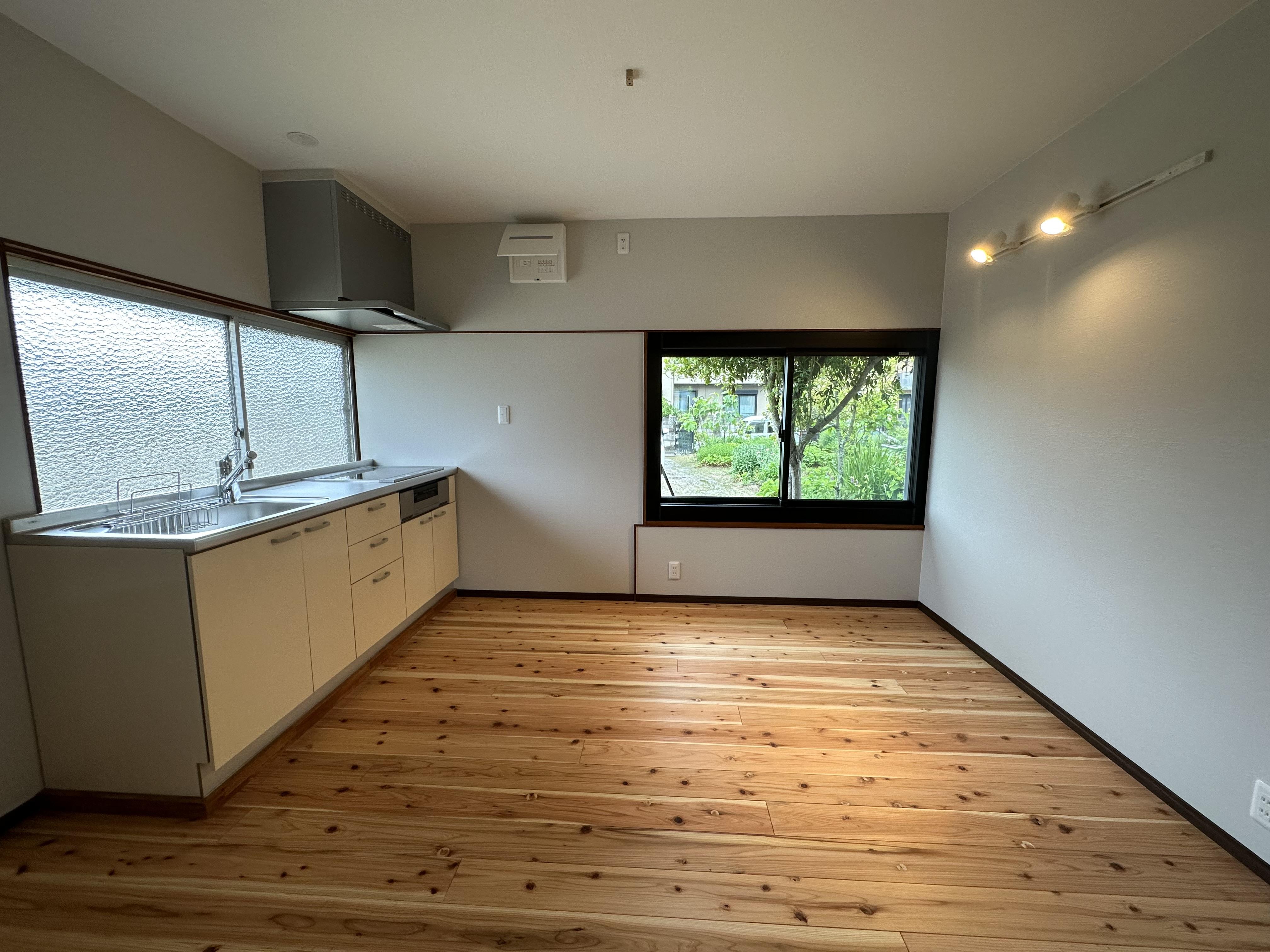 築40年の昭和の雰囲気を残したリノベーション。 床は無垢の木のフローリングに貼り替え、木の温もりを感じられる空間にしました。