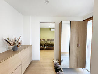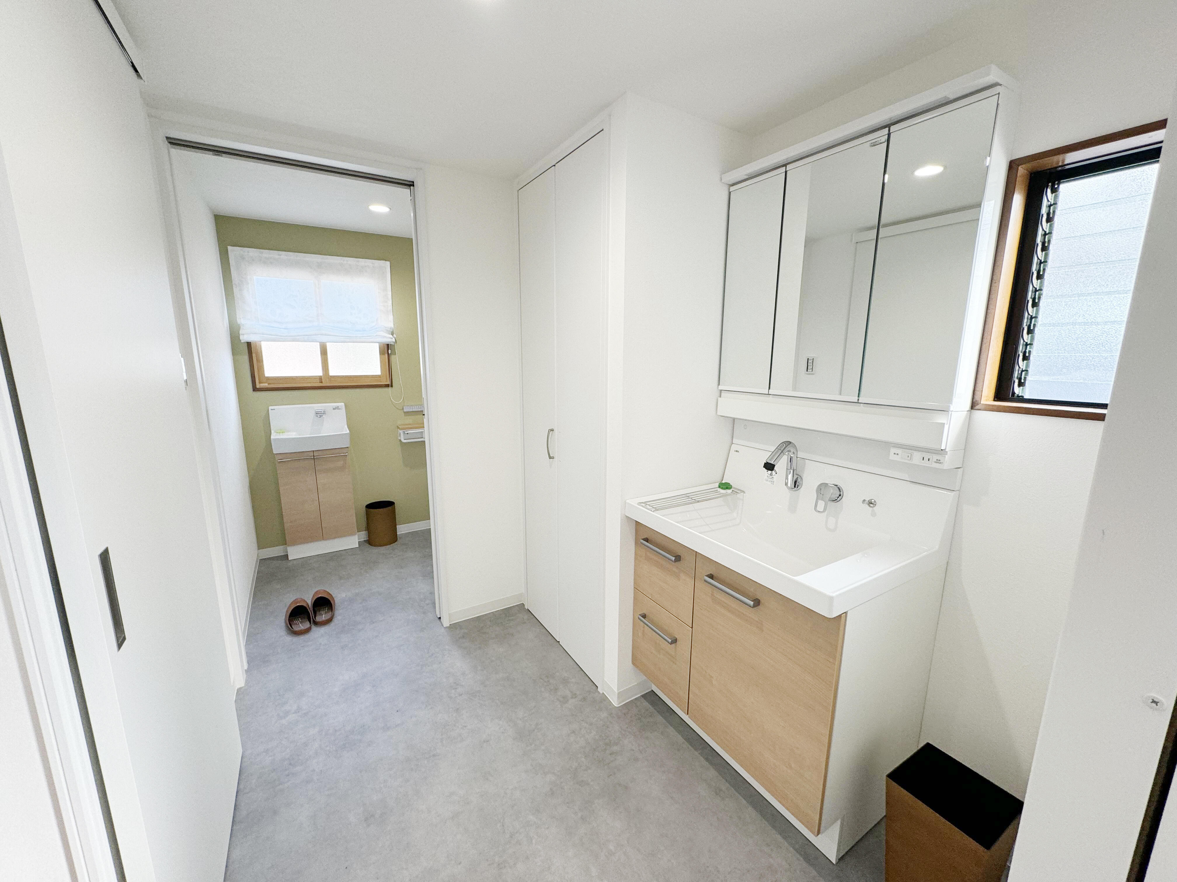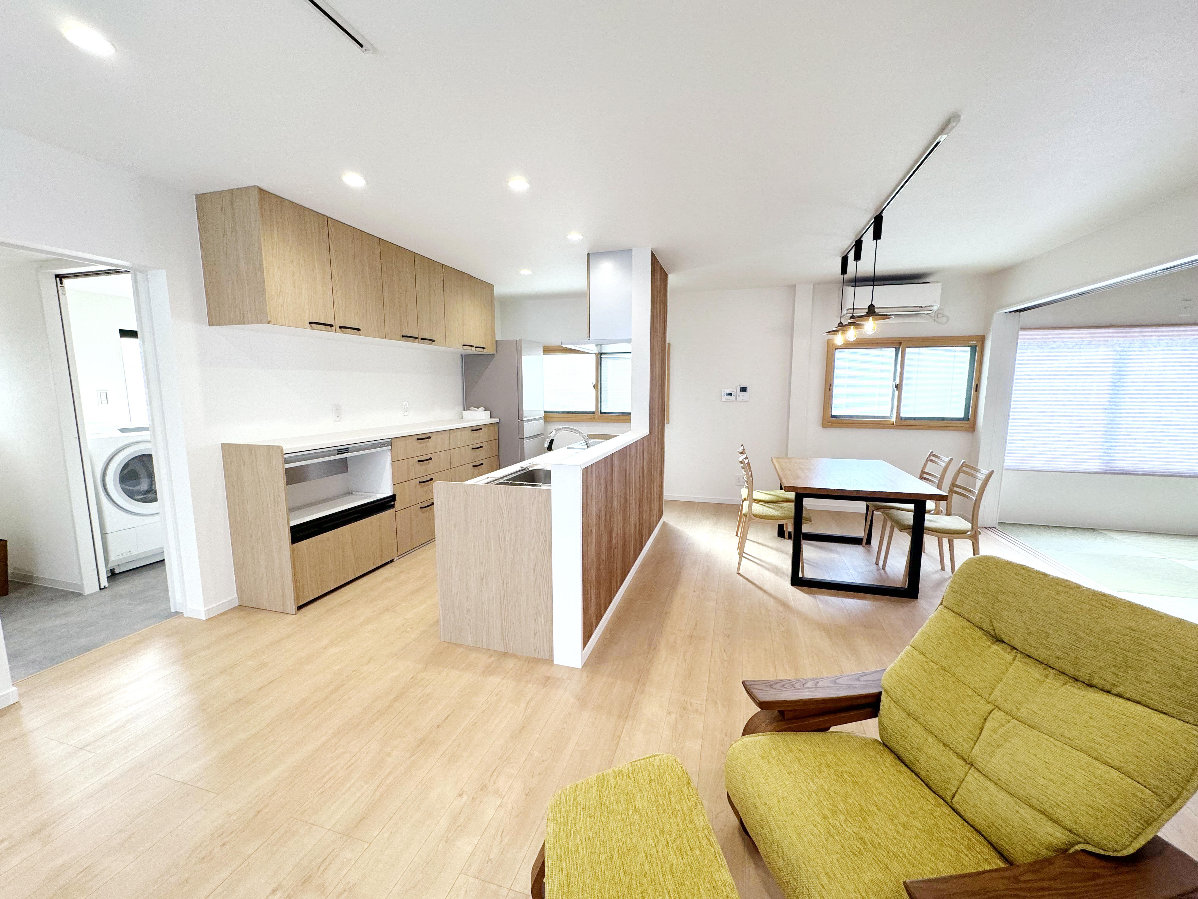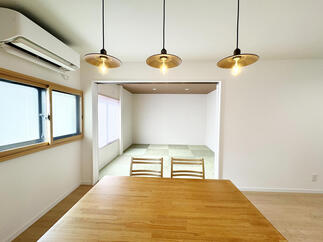 平屋をフルリフォームし、ライフスタイルに合わせて、間取りを変更しました。 トイレ、洗面、浴室は一直線に配置し、動線をスムーズにしました。 また、施主様思い出のダイニングテーブルもリフォームし、新しい部屋のインテリアとして 魅力的な存在感を演出しています。
