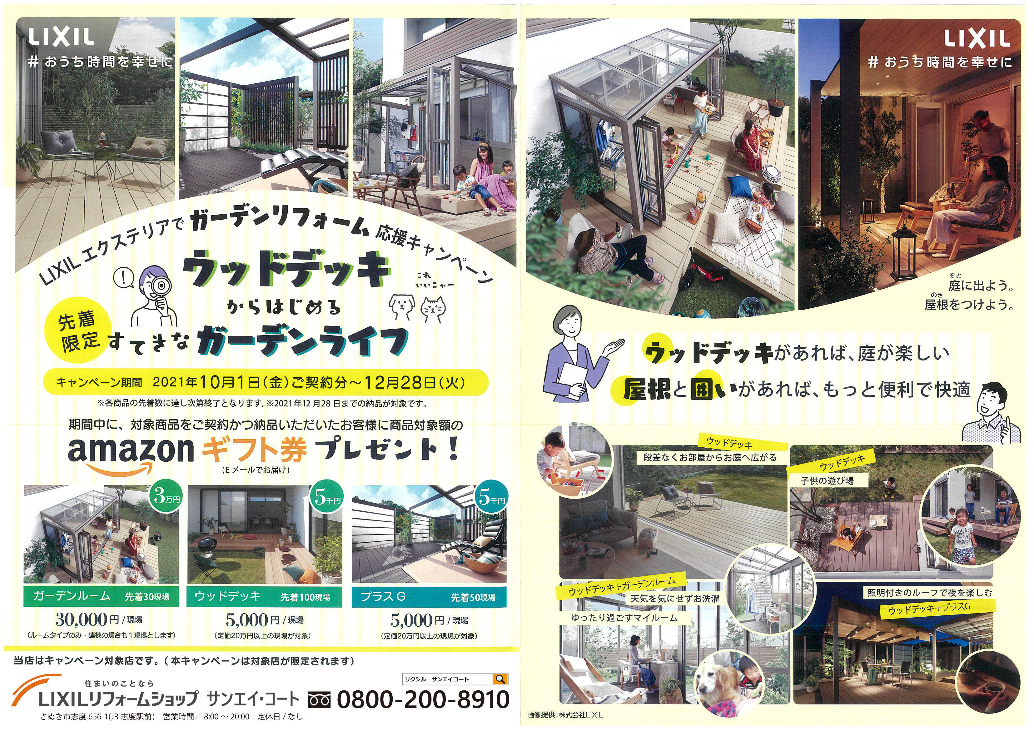 ガーデンルーム、ウッドデッキ、プラスGをご契約いただいたお客様に、