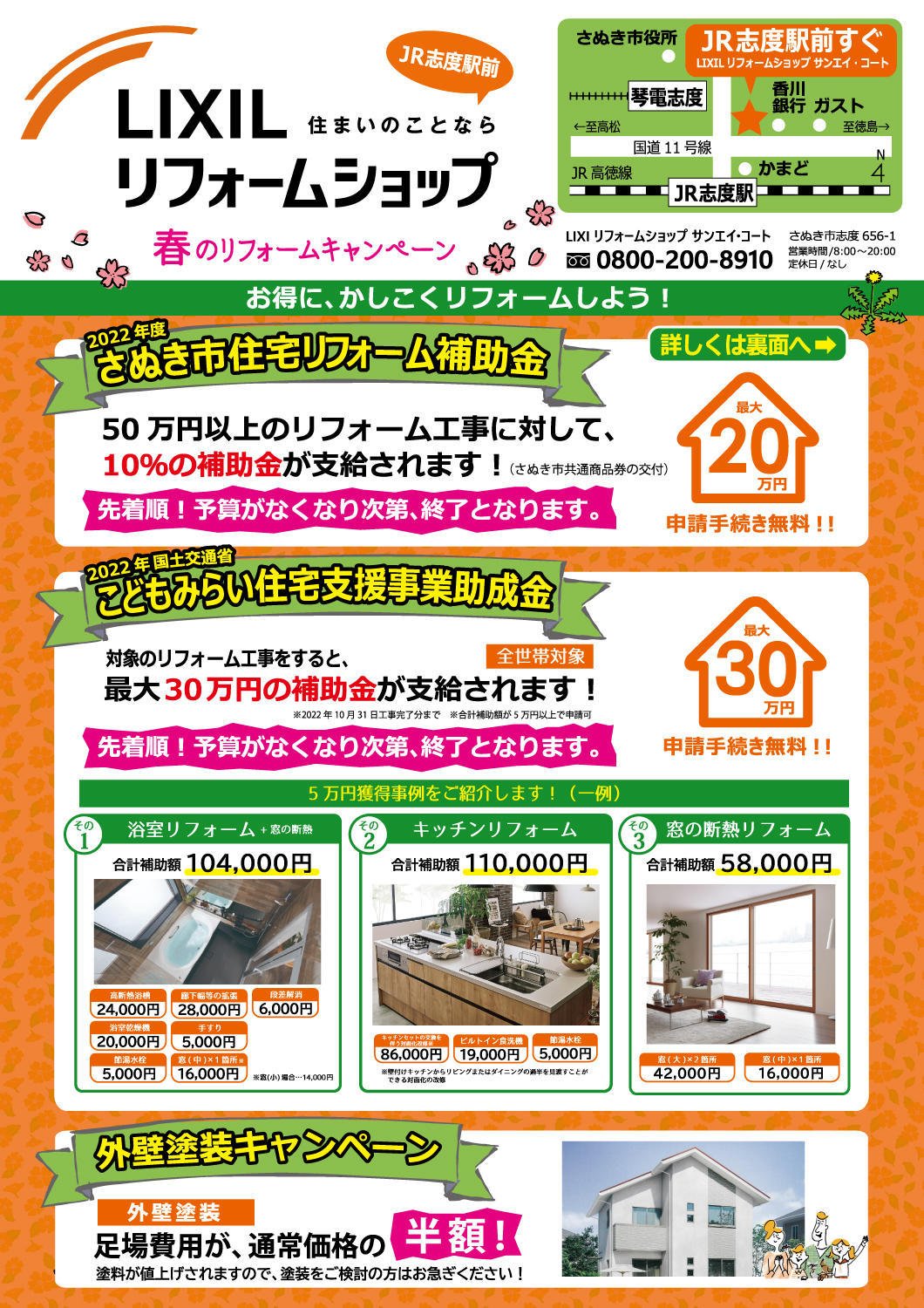 2022年5月10日よりさぬき市住宅リフォーム補助金の受付が開始されます!