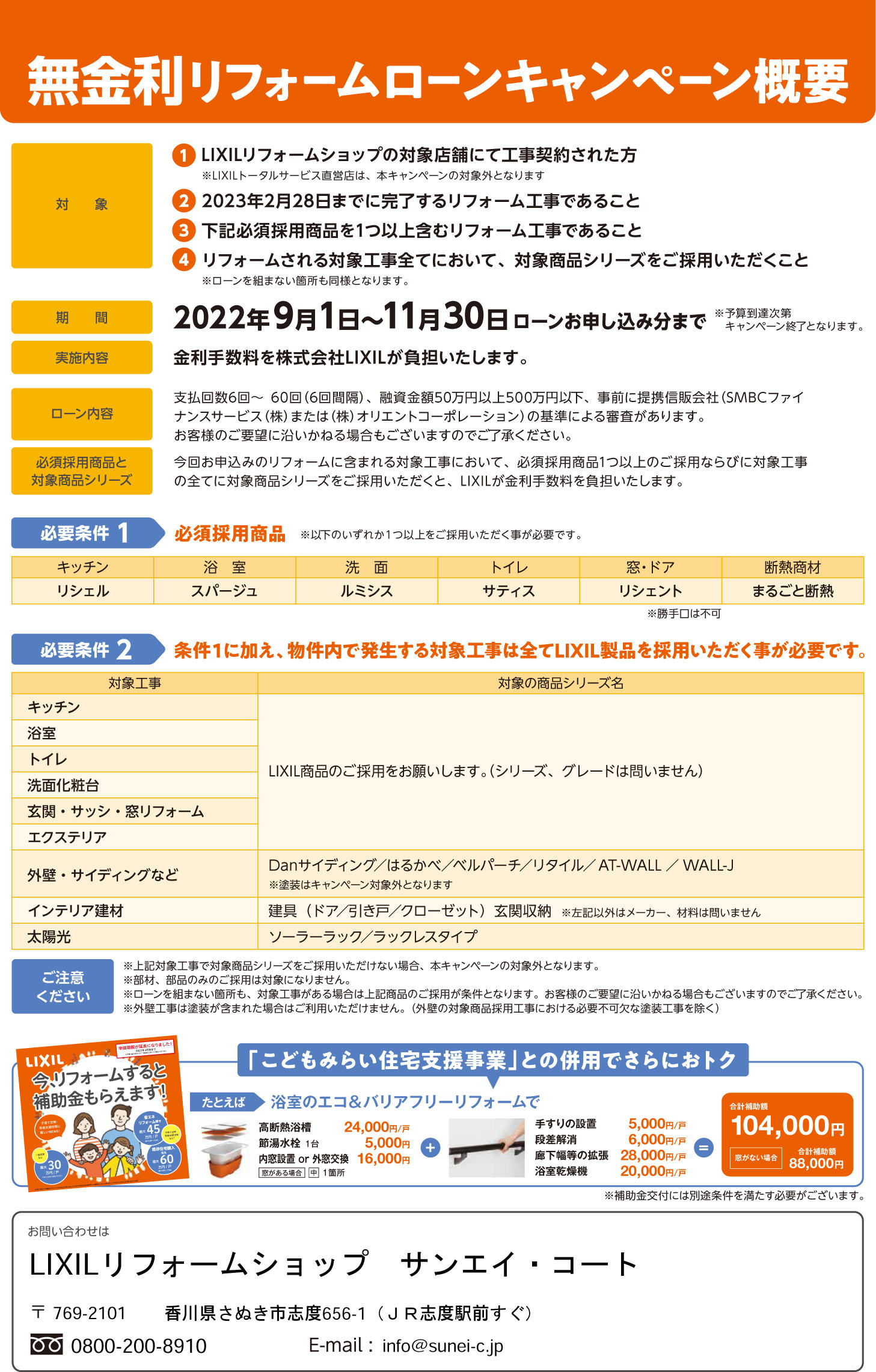 リクシルの商品を使ってリフォームすると無金利でローンが組めます!