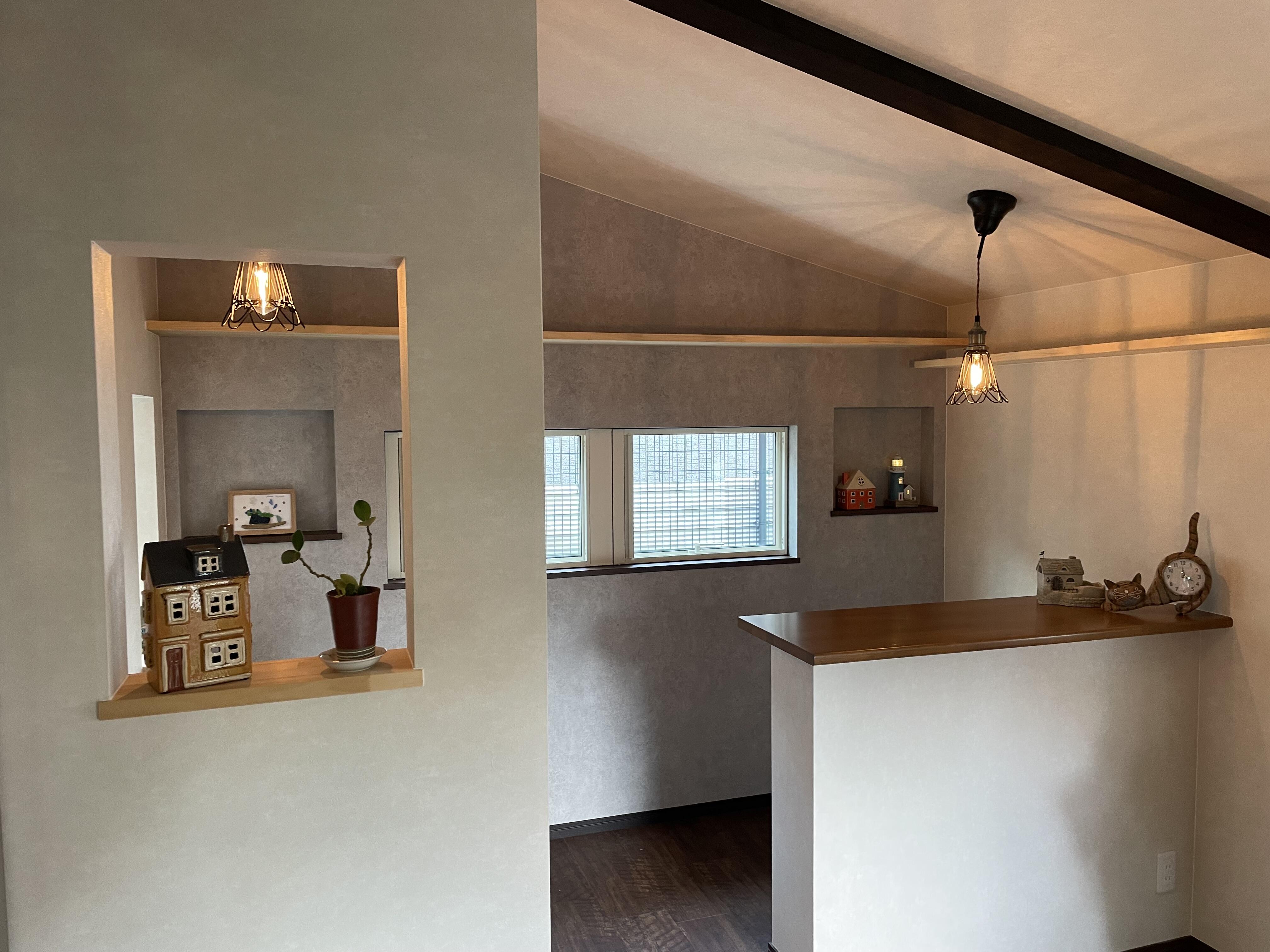 増築工事 猫ちゃんと楽しく遊べる空間! キャットタワーやキャットウォークなど猫ちゃんの喜ぶお部屋が完成しました。 玄関ドアや飾り棚、お洒落なカフェのような仕上がり。 施主様のセンスがひかるお部屋になりました。