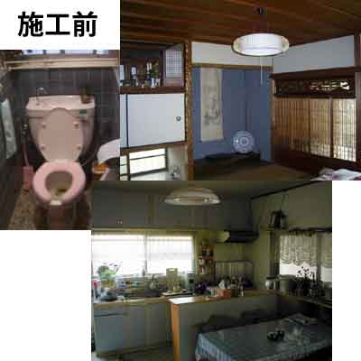 「快適で使いやすい広いリビング」という要望から実現できたのは、家族が自然に集まり団欒が生まれる空間。 和室、応接室もベースはシンプルに、持っていた建具や家具を再利用しながら、照明・カーテン・家具などで雰囲気を一新した。 『あるものを上手に使う!』 こんなエコリフォームはコスト面でも良し!!