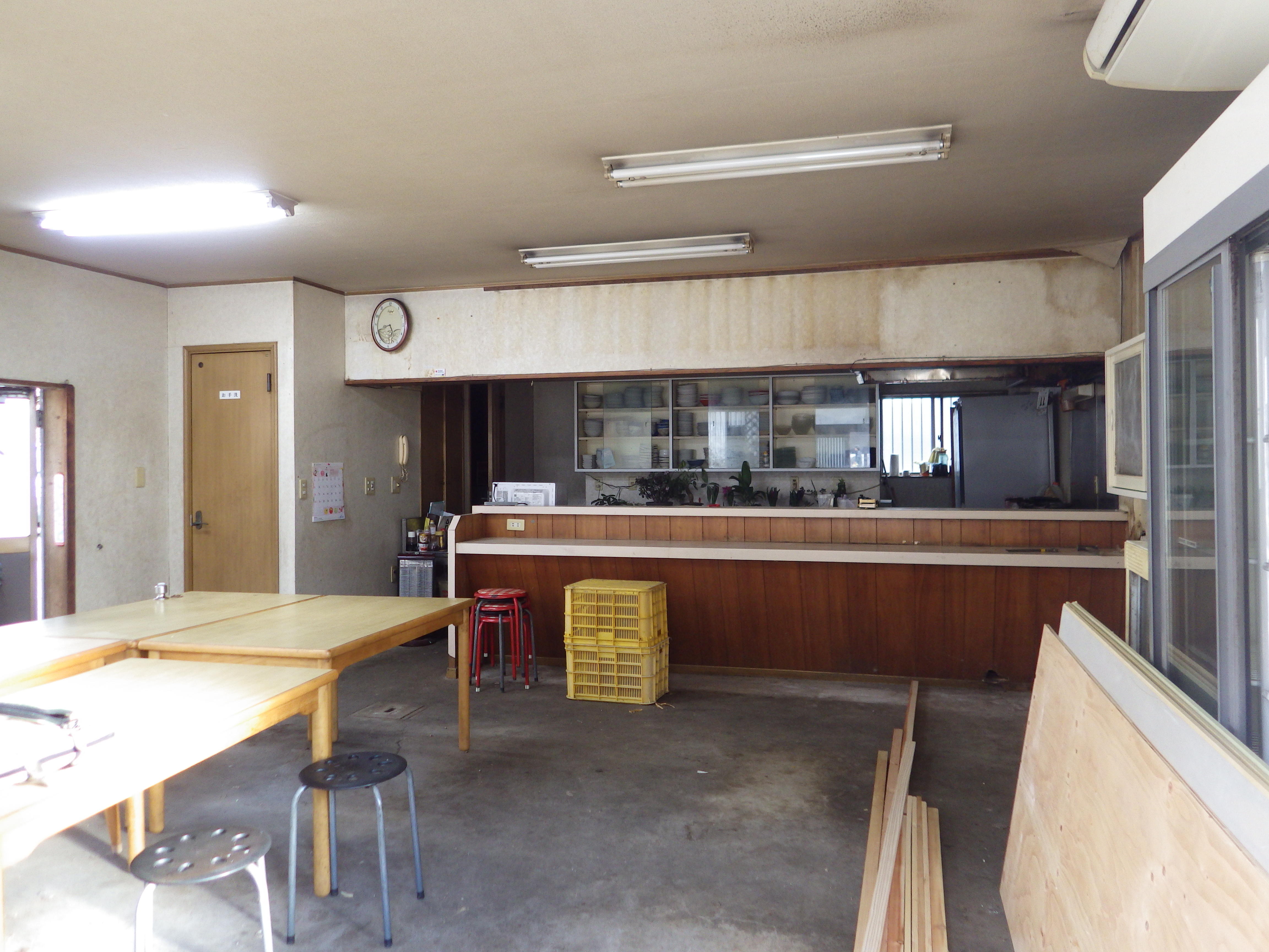 昭和の雰囲気を残しながらイメージチェンジ リアテックシートでの補修を利用し、腰壁は同じ柄のビニルクロスで仕上げ、 統一感のあるイメージにしています。