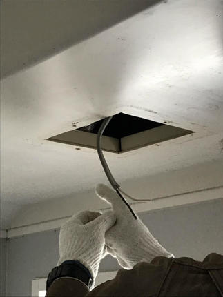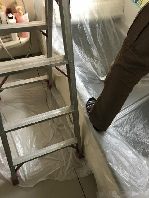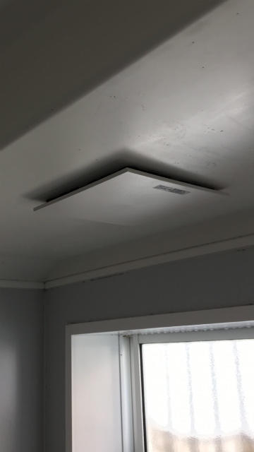 お仕事がお忙しく、なかなか時間がとれなかったA様。 工事の時はお母様に立ち合いしていただきました。 そのお母様は工事の間リビングにおられたので、上でも書きましたがこんな養生をしてたとは気づいてもないと思います。 ただ、新しくなった換気扇のスイッチを入れた時の驚いた顔が思い出されます(笑) 最新の換気扇ってこんなに静かなんですよ。