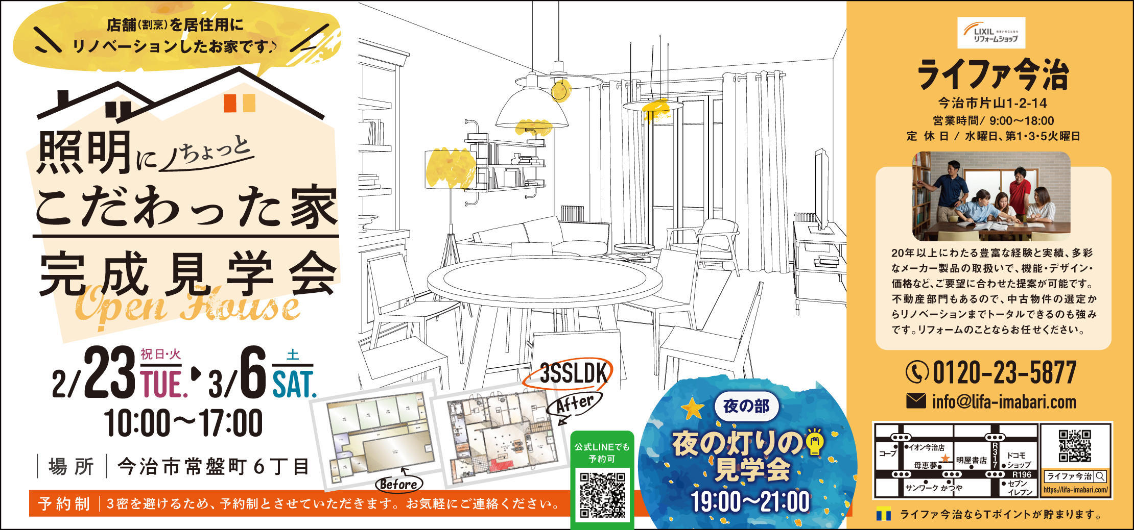 またライファ今治のリノベーションと言えば...やっぱり照明ですよね!今回も夜の部を開催させていただきます。