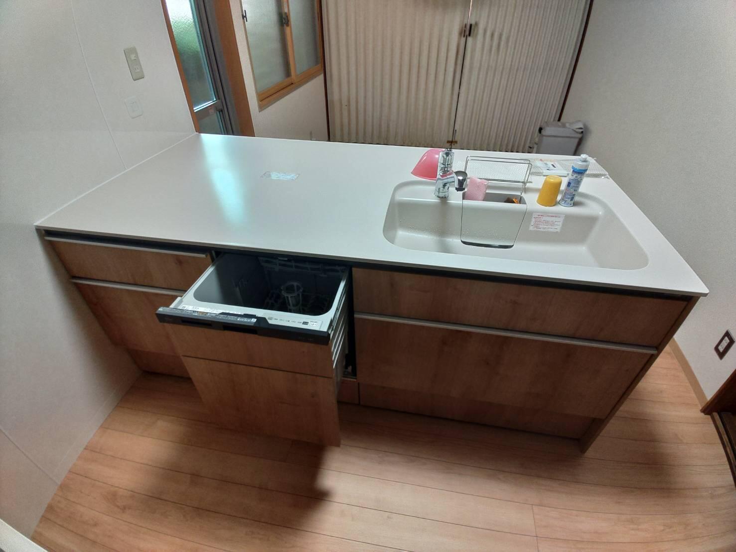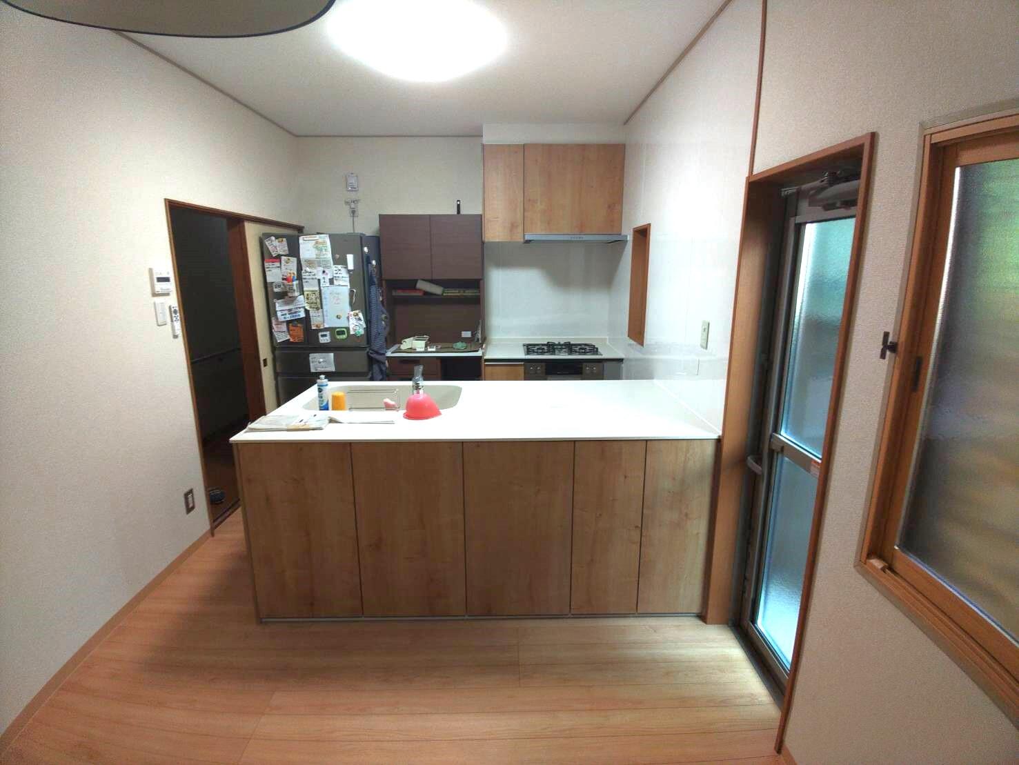 現在おひとりでお住まいですが、今後2世帯でお住まいの予定ということでキッチン、浴室の改修をされました。キッチンは壁付L型キッチンから対面2型キッチンにリフォームし、家族とのコミュニケーションが取りやすい空間を実現しました。シンクとコンロの独立配置で作業効率が向上し、開放的で収納力もあるデザインにご施主様も満足されていました。浴室も在来のタイル貼りから、温かい素材の浴室になり、また浴室は1サイズUPしたので今までよりゆったりと快適に使っていただけるようになりました。こちらも大変喜んでいただけました。