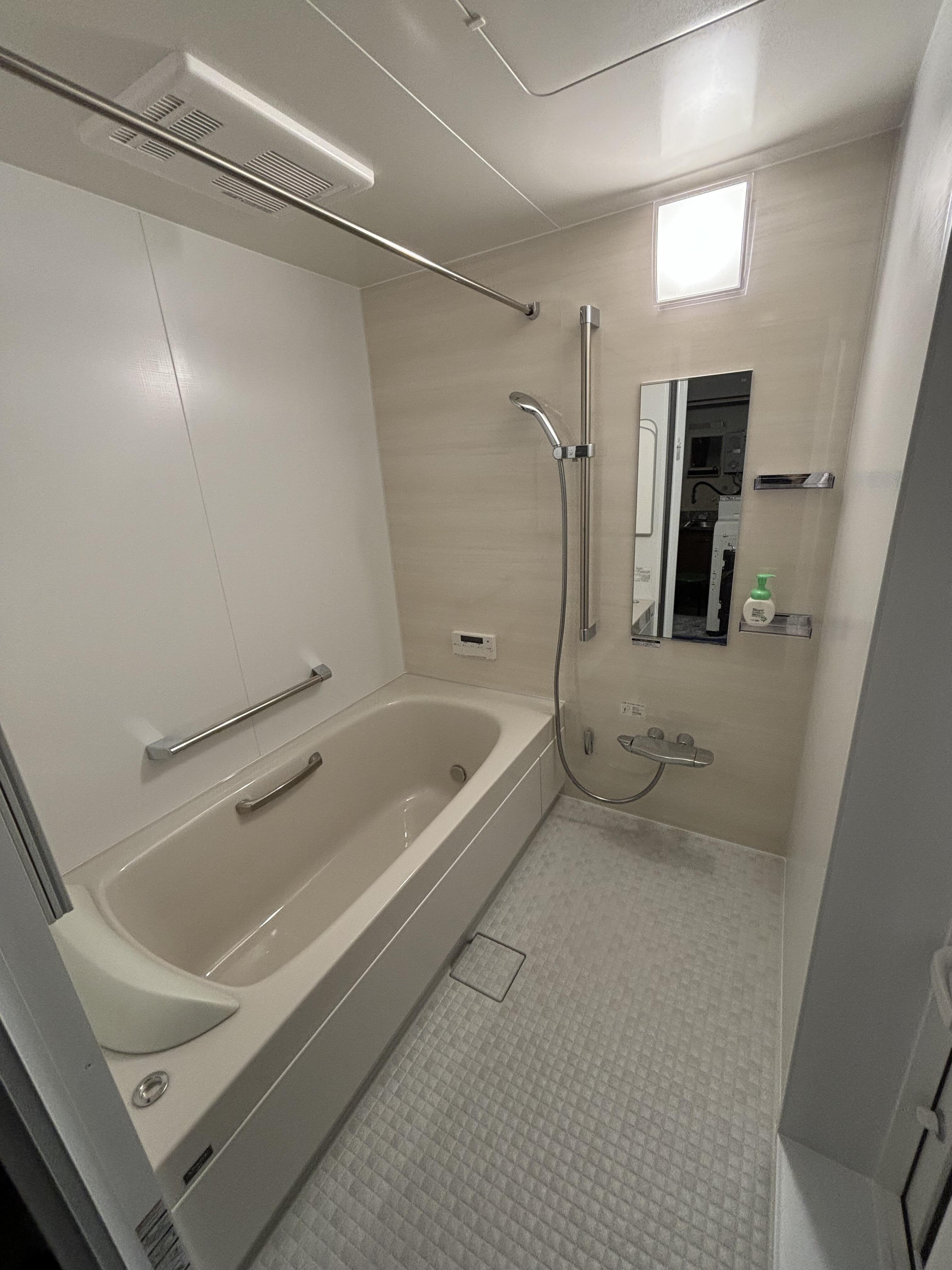 浴室ドアが動かなくなったとのことで、これを機に浴室全体の取替工事をしました。 タイル張りで冷たかった在来浴室を、LIXILスパージュUBにリフォーム。小さな浴槽から広々とした暖かな浴槽へ生まれ変わり、快適なバスタイムを実現しました。 デザイン性と機能性を兼ね備えた理想の浴室空間となりました。