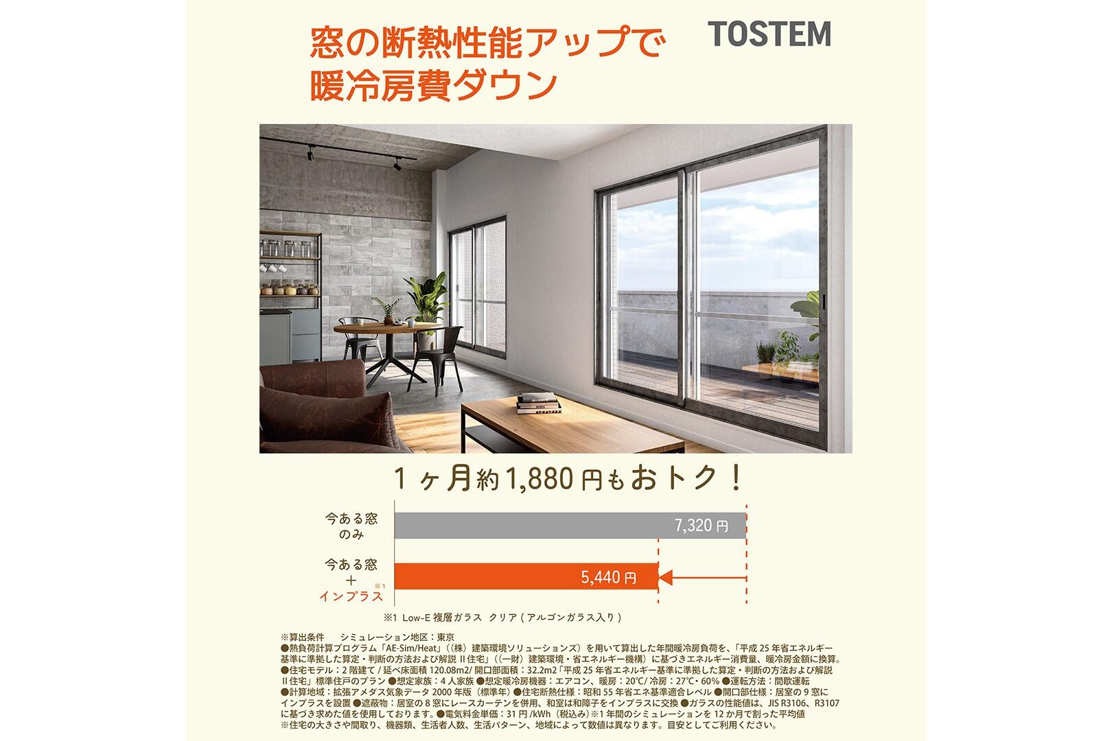内窓インプラスで断熱性能がアップし毎月の連暖房費の節約にも。