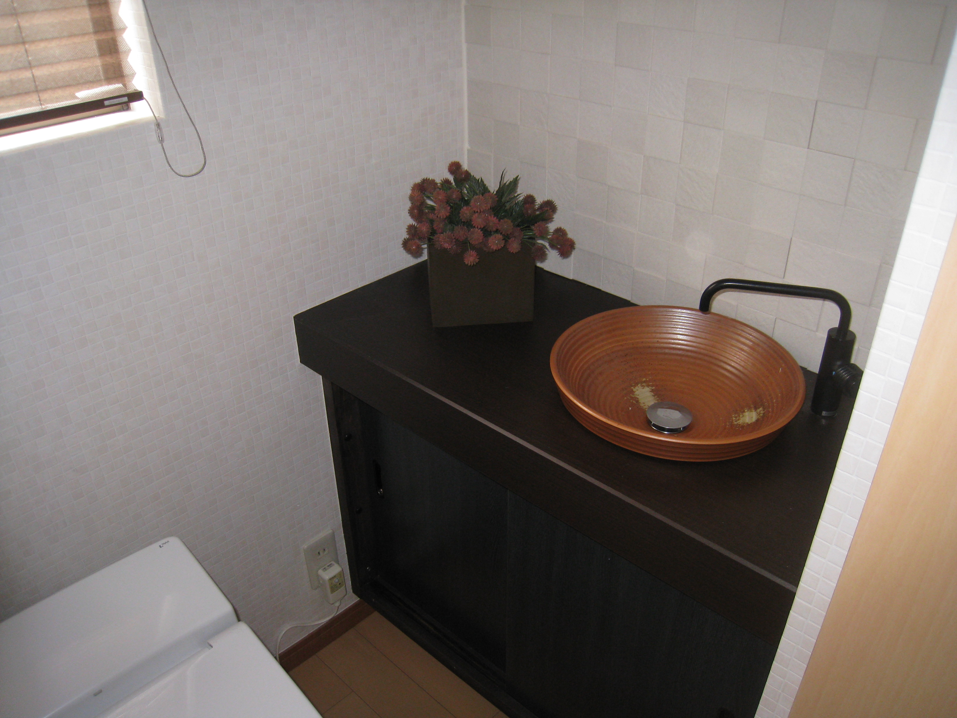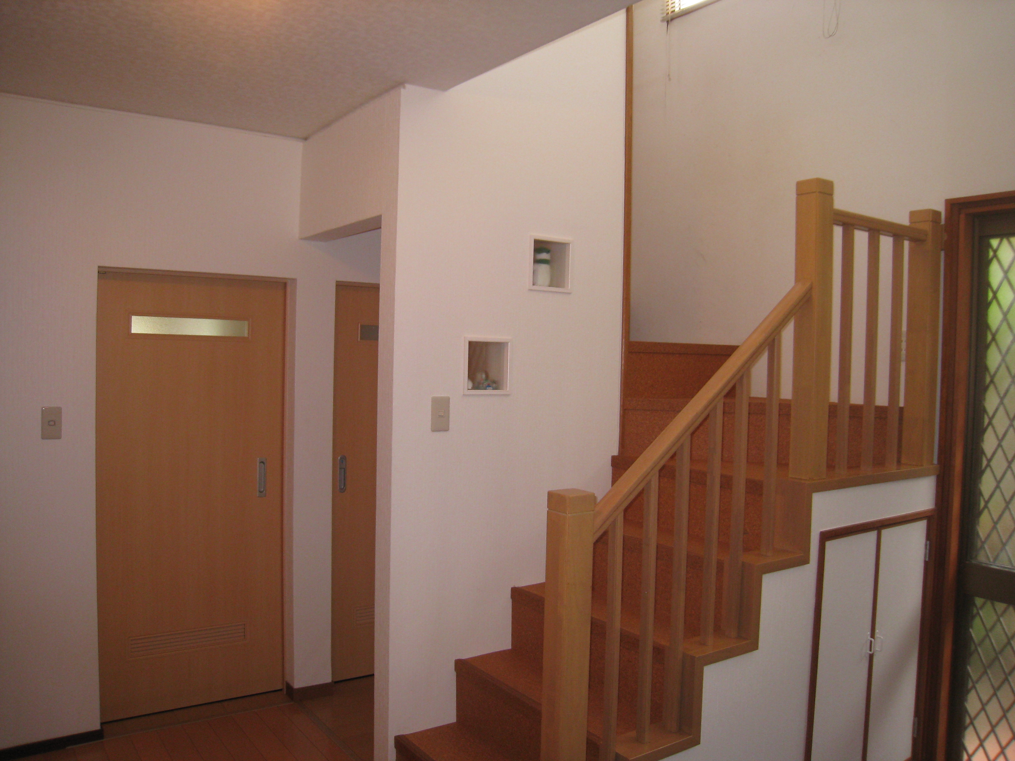 トイレが洗面室にあったのを別入口に改良して、階段を作り変えました。