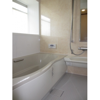 浴室は明るく清潔感のあるホワイトを基調に、サーモバス・サーモフロアなど機能性も充実したものをご提案しました。 小さいお子様と一緒に入浴を楽しめるように、1600サイズのロング浴槽を採用しました。 既存の窓もそのまま活かせたので、明るく快適なバスルームになりました。
