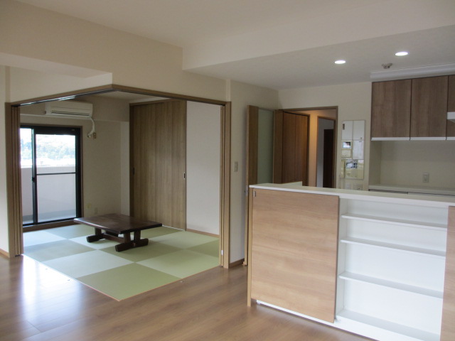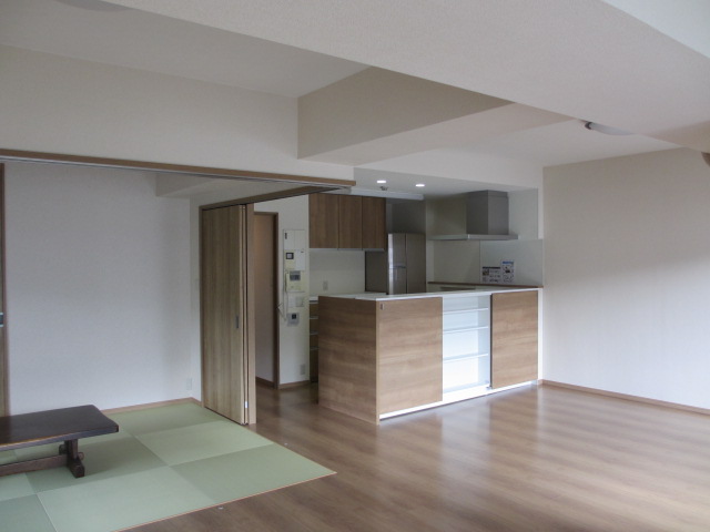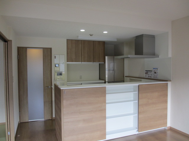 独立型のキッチンを間取り変更し、オープンキッチンにしました。