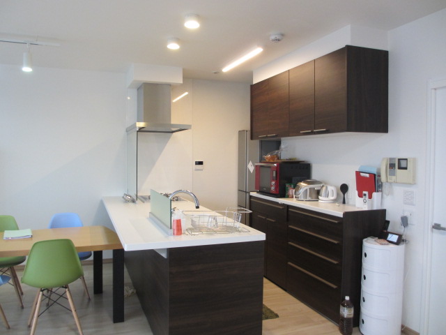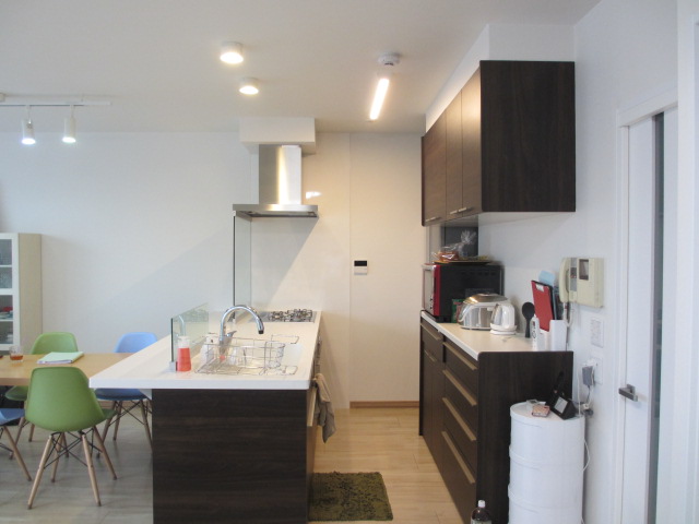 カウンター付きの対面キッチンを設置しました。以前あった部分壁をはずして、フルオープンタイプにする事で、広く明るいキッチンになりました。