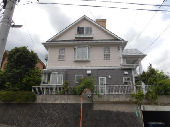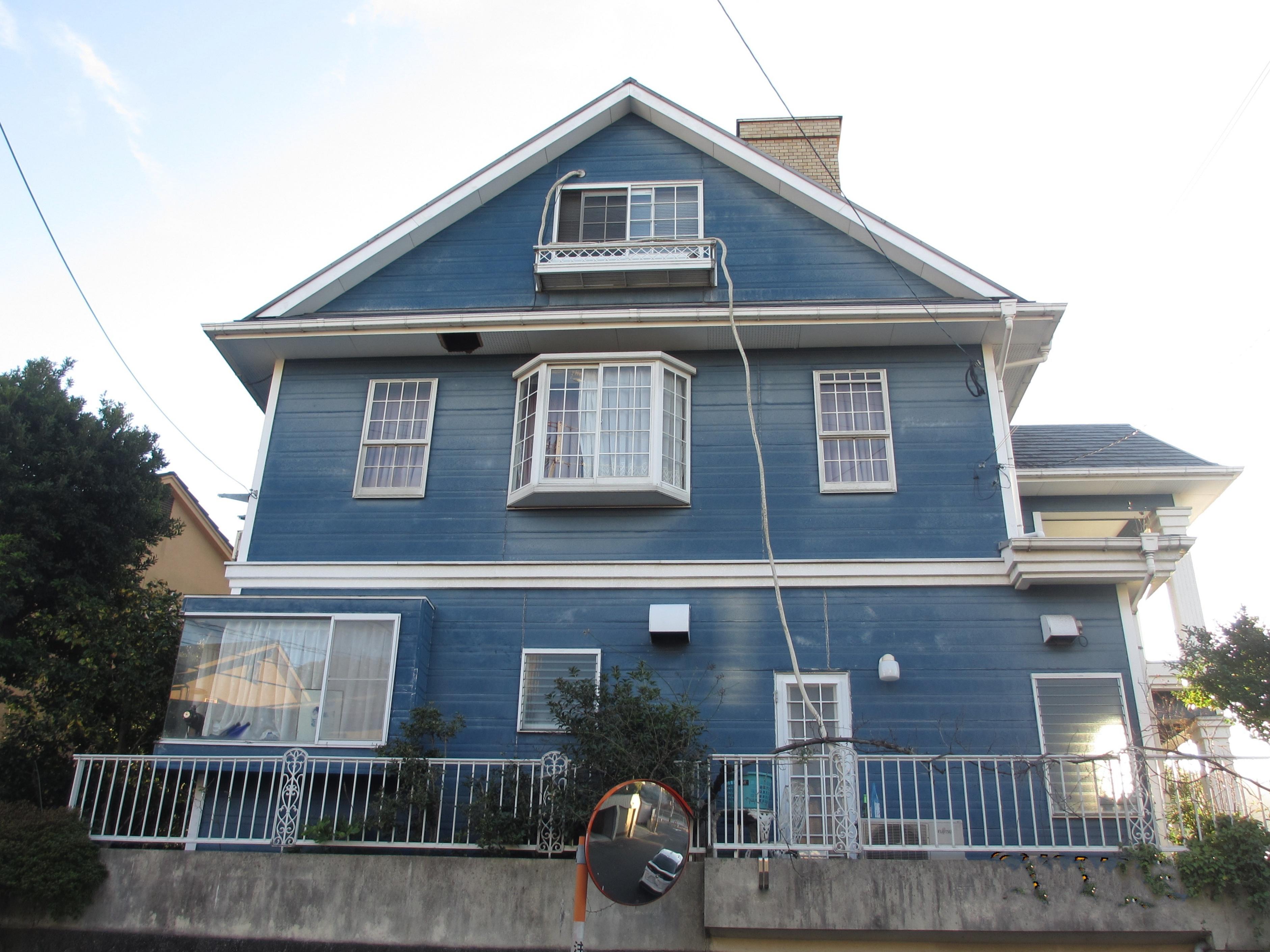 壁と屋根の全体の汚れが目立ってきたので、改修して綺麗にしたいとのご要望でした。陽に焼けても褪せた感じが出ないように、淡い色調の落ち着いたツートンにて提案しました。