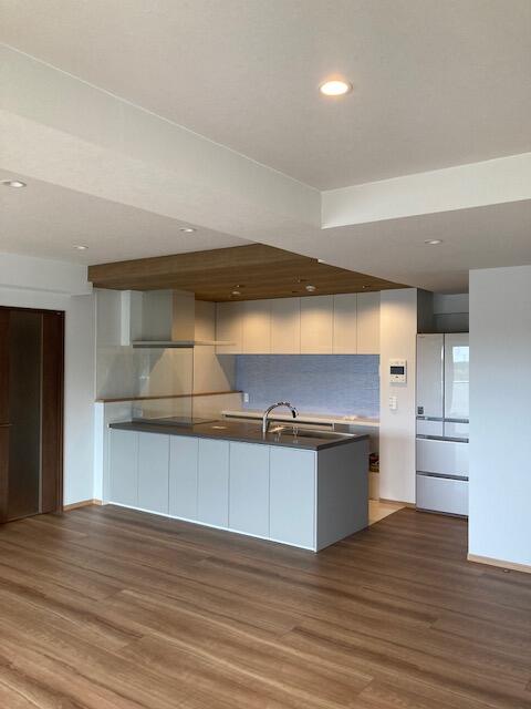築20年以上のマンションでしたので、機器が古くなったので全面改修をご希望でした。 台所、ダイニング、リビング、個室と部屋が細かくわかれていて古い間取りだったので、間仕切り壁をなくし広々としたLDKに変更しました。