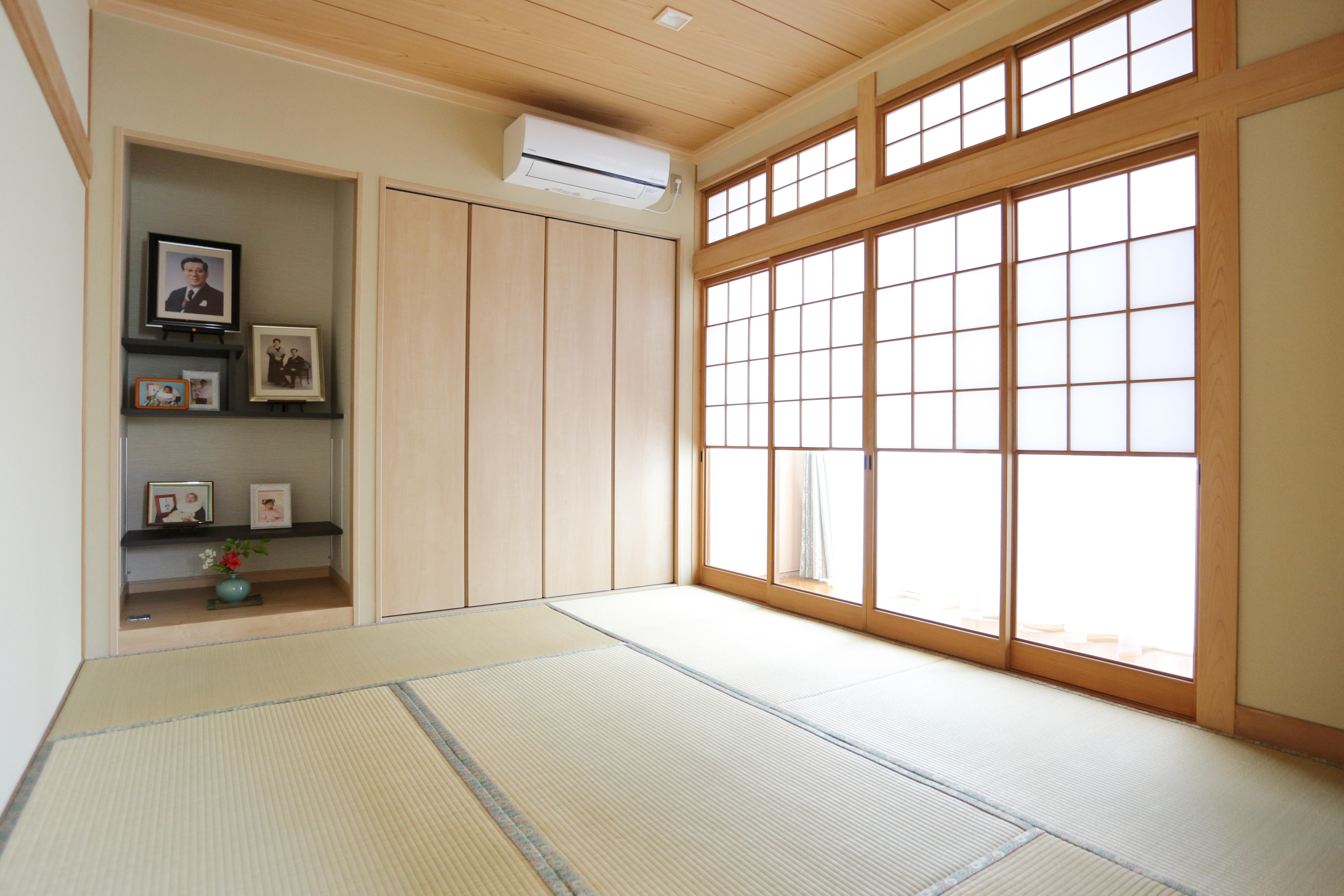 2年前に雨漏りの相談でご縁をいただいたS様。弊社の施工力と対応力にご満足いただき、全面リフォームを検討した際に「山﨑建材に!」 と思い出してくださいました。リフォームのテーマは『受け入れる家』。ご夫婦2人の穏やかな生活を中心に考えながら、ご家族で帰省される娘さんや、年1回集まる親族とのにぎやかな時間などにも対応できるようプランニングしました。『リフォームをしたお陰で、孫が頻繁に遊びに来てくれるようになりました♪』と嬉しそうにお話する奥様。床の間に飾られた家族写真の更新がこれからも楽しみですね。
