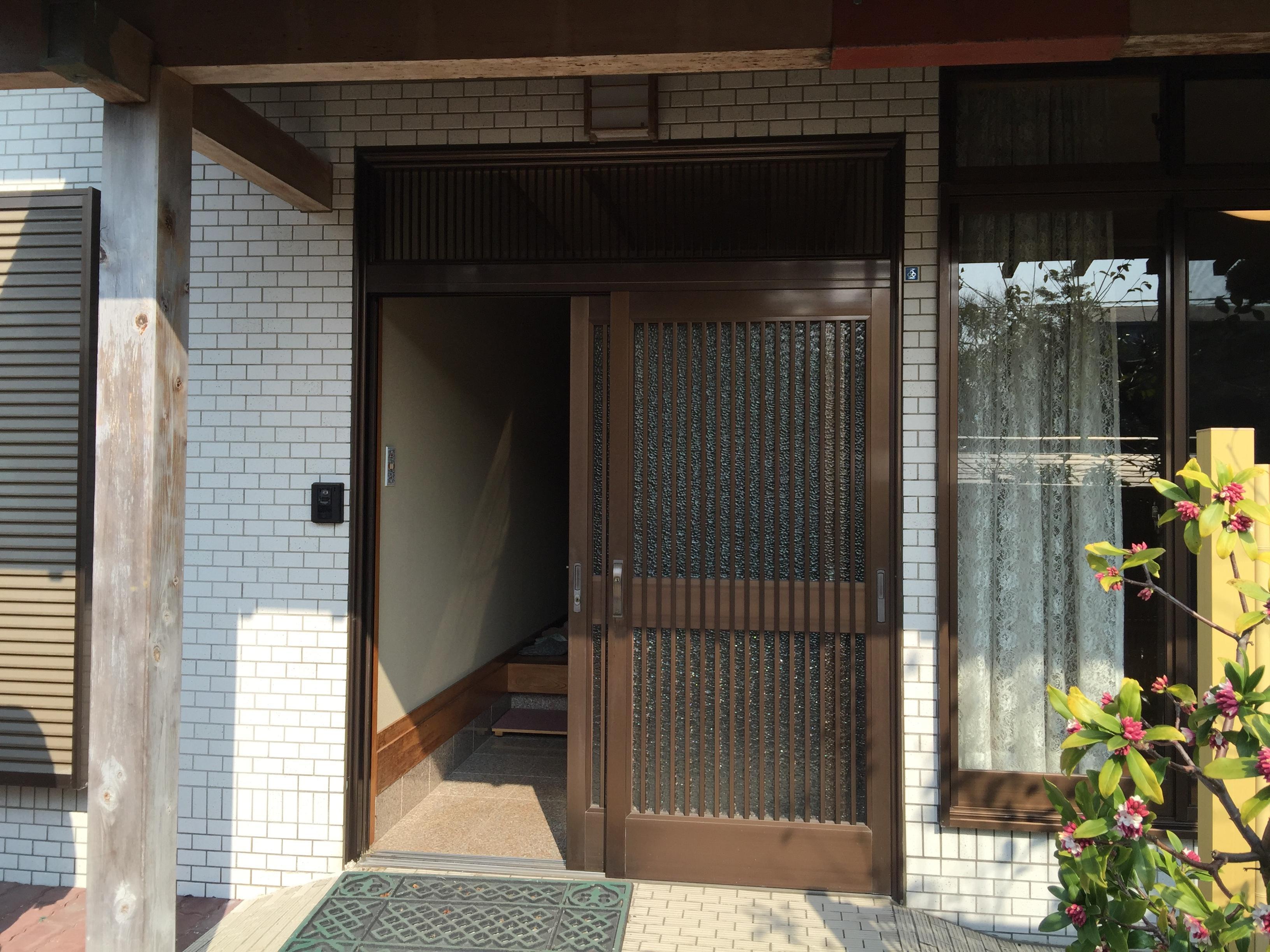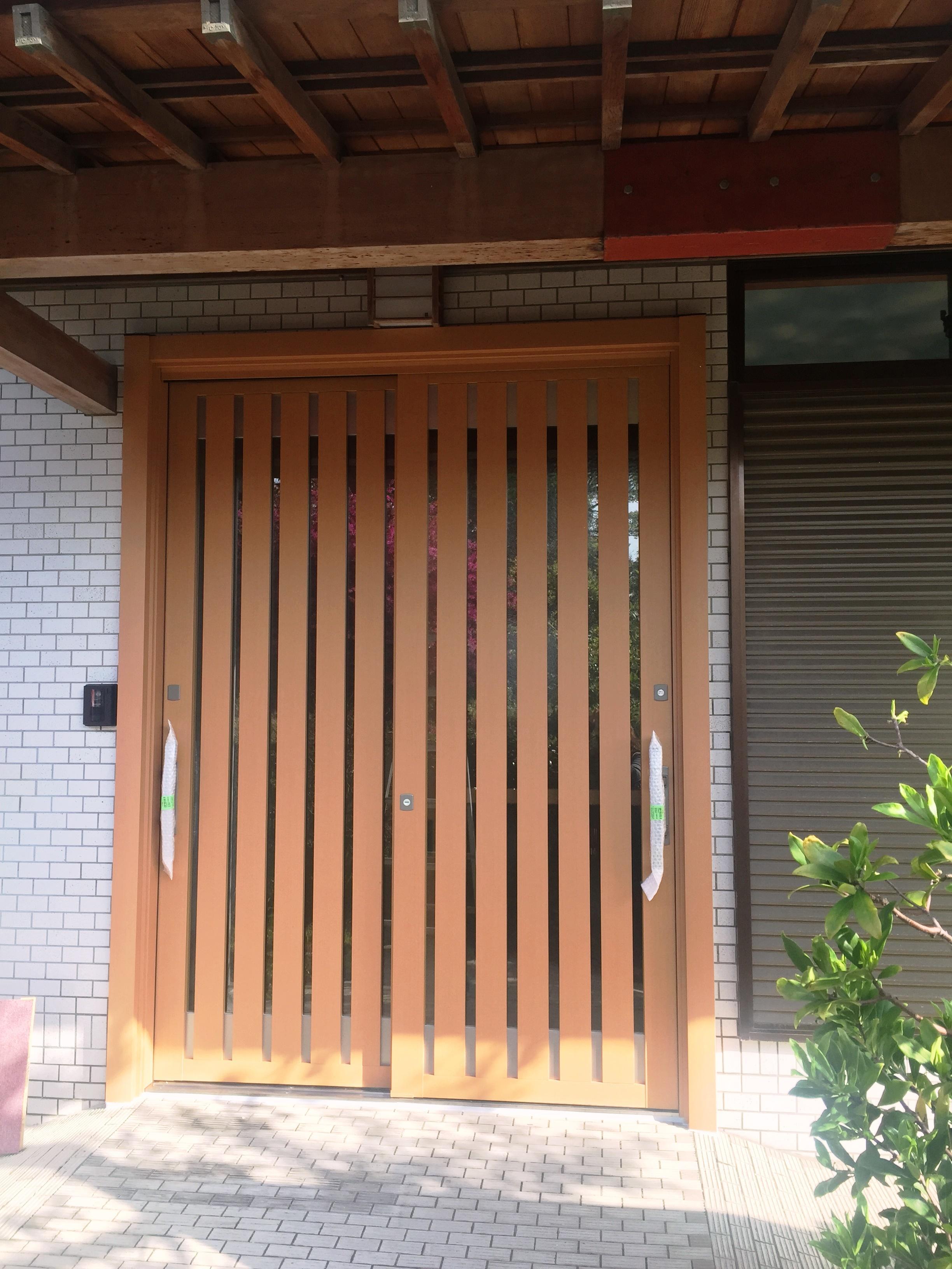 立派な日本家屋を中古で購入されたK様。和風な雰囲気を残しつつも、雑貨屋さんをされている奥様好みのナチュラルテイストに合わせてリフォームしました。LIXILリフォームドア「リシェント」は、外壁を壊さずに取り換えられる玄関ドアです。上部の欄間を撤去して下から上まで大きな扉を取り付けただけでも、雰囲気が変わりました♪ストライプデサインも日本家屋の雰囲気と良いバランスです。