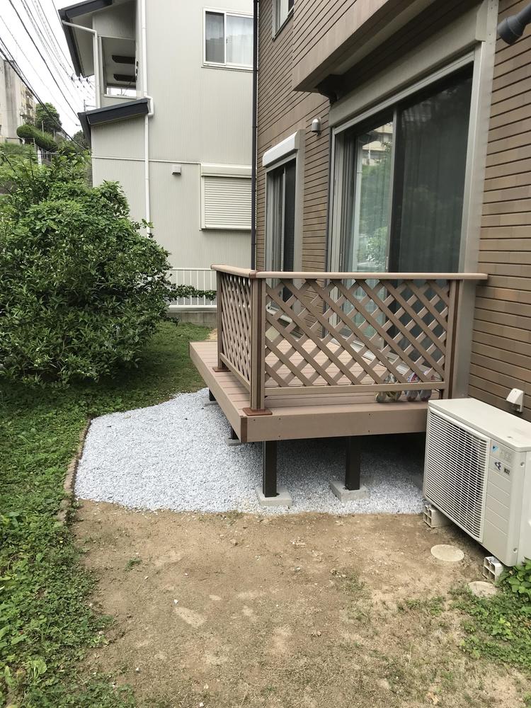 既存のウッドデッキは天然木材で傷みが気になりだしたので人工木材に替えたいとのご連絡いただきました。今回LIXILの『樹ら楽ステージ』。天然の木粉を配合しリアルに表現された木質感でありながらも湿気で腐ったり、シロアリの食害の心配がなく安心して使えます。また、こちらのカラーは昇温抑制効果のある顔料を採用することで、夏季でも表面温度の極端な上昇を抑えます。雨シミが発生した場合は水拭きで取ればOKと大変人気なウッドデッキです☆