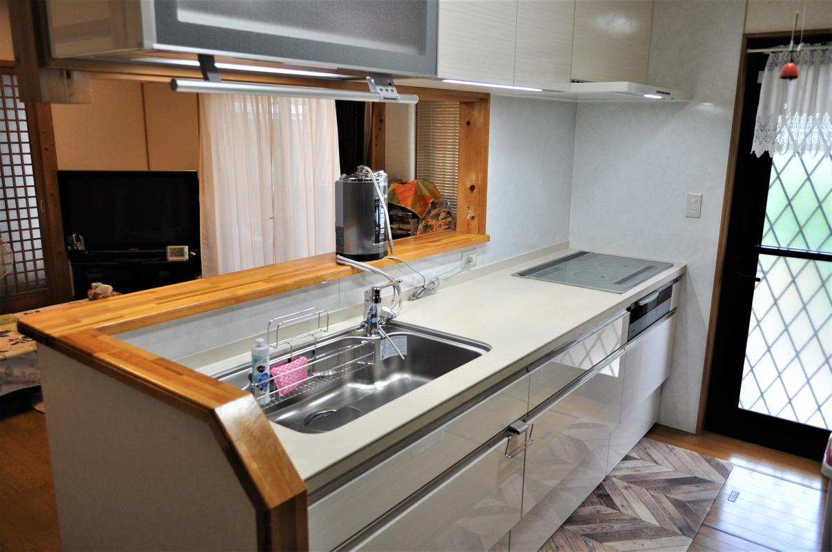 今回で4回目のリピートとなりましたH様。18年間頑張ってくれたレンジフードから異音がするようになり、その他気になるところもあったためシステムキッチン全体をリフォームさせていただくことになりました。今回LIXILの人気モデル『リシェル』にリフォームしました。リシェルの特徴は、なんといってもセラミックトップです。高温の鍋やフライパンを置いても変色や変形がしにくく、キズやシミなどにも強いので安心してキッチン作業をおこなえます。