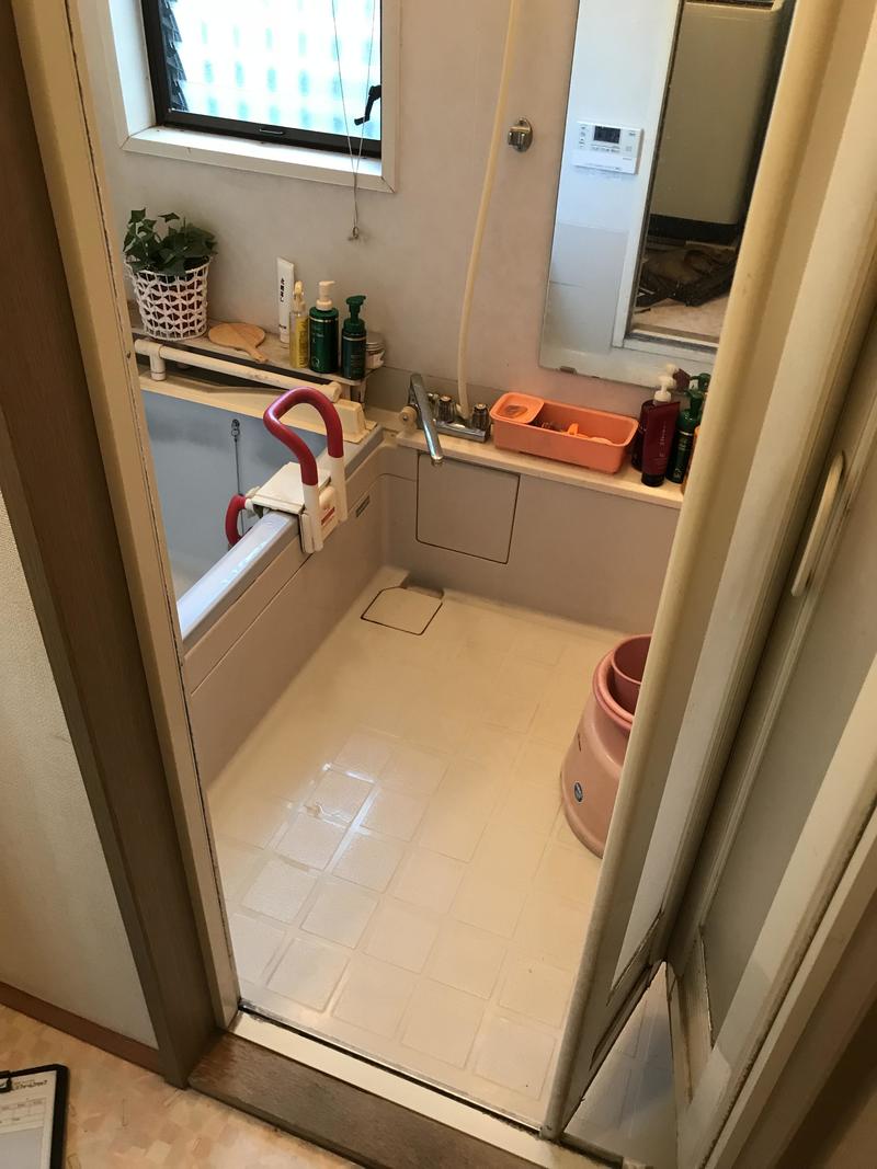 山崎建材のリフォームOBさんよりご紹介いただきお伺いしました。浴室の経年劣化にともなう浴室等の改修工事を施工しました。やがて歳を取っていくお施主様にとって末永くご安全にご使用いただくため、バリアフリーや節水、手すり、その他設備の充実したLIXILシステムバスルーム『アライズ』を設置しました。