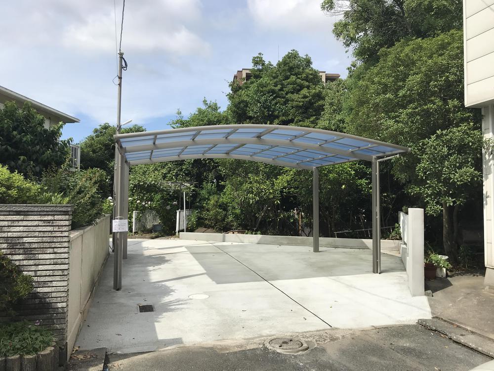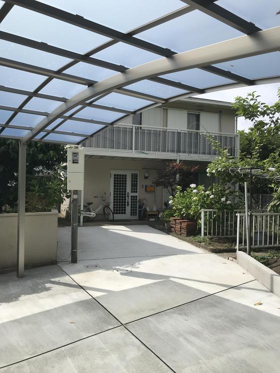 駐車場、中庭、アプローチは全て土間コンクリート打設で強度を補完し、2台分のカーポートは風速42mでも耐えうるLIXIL『フーゴ』を採用しました。