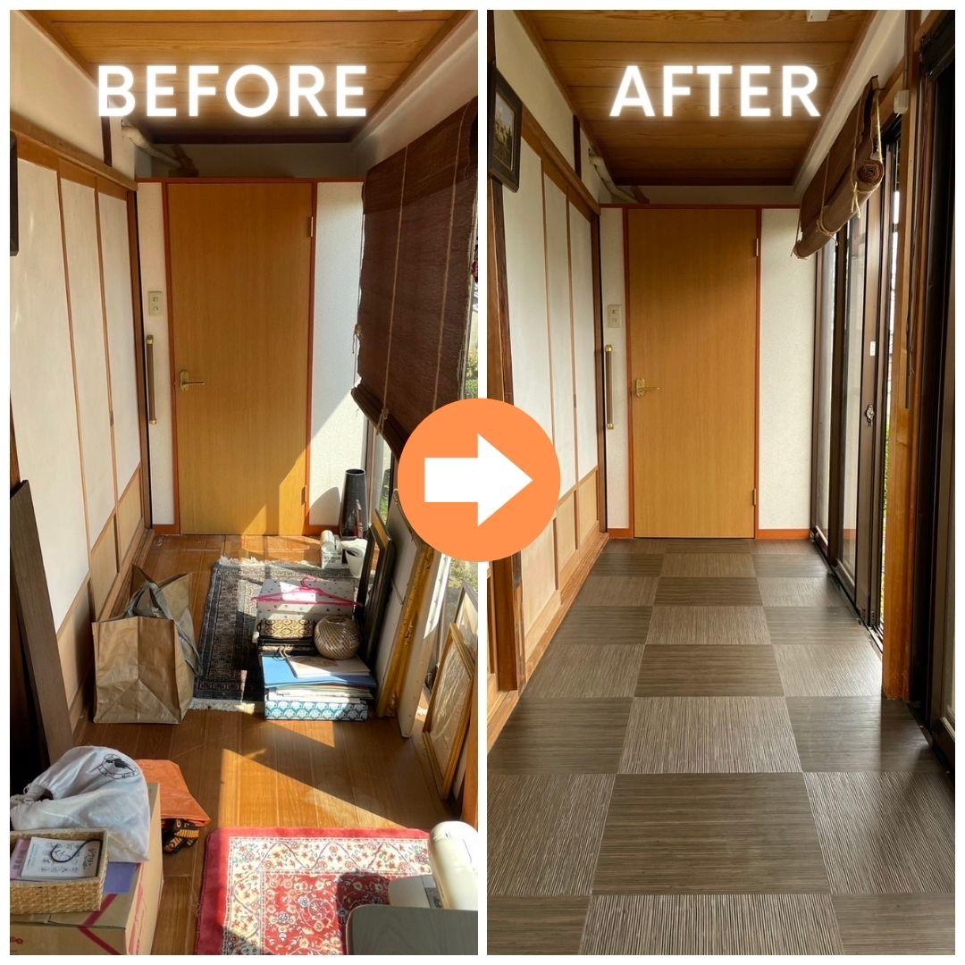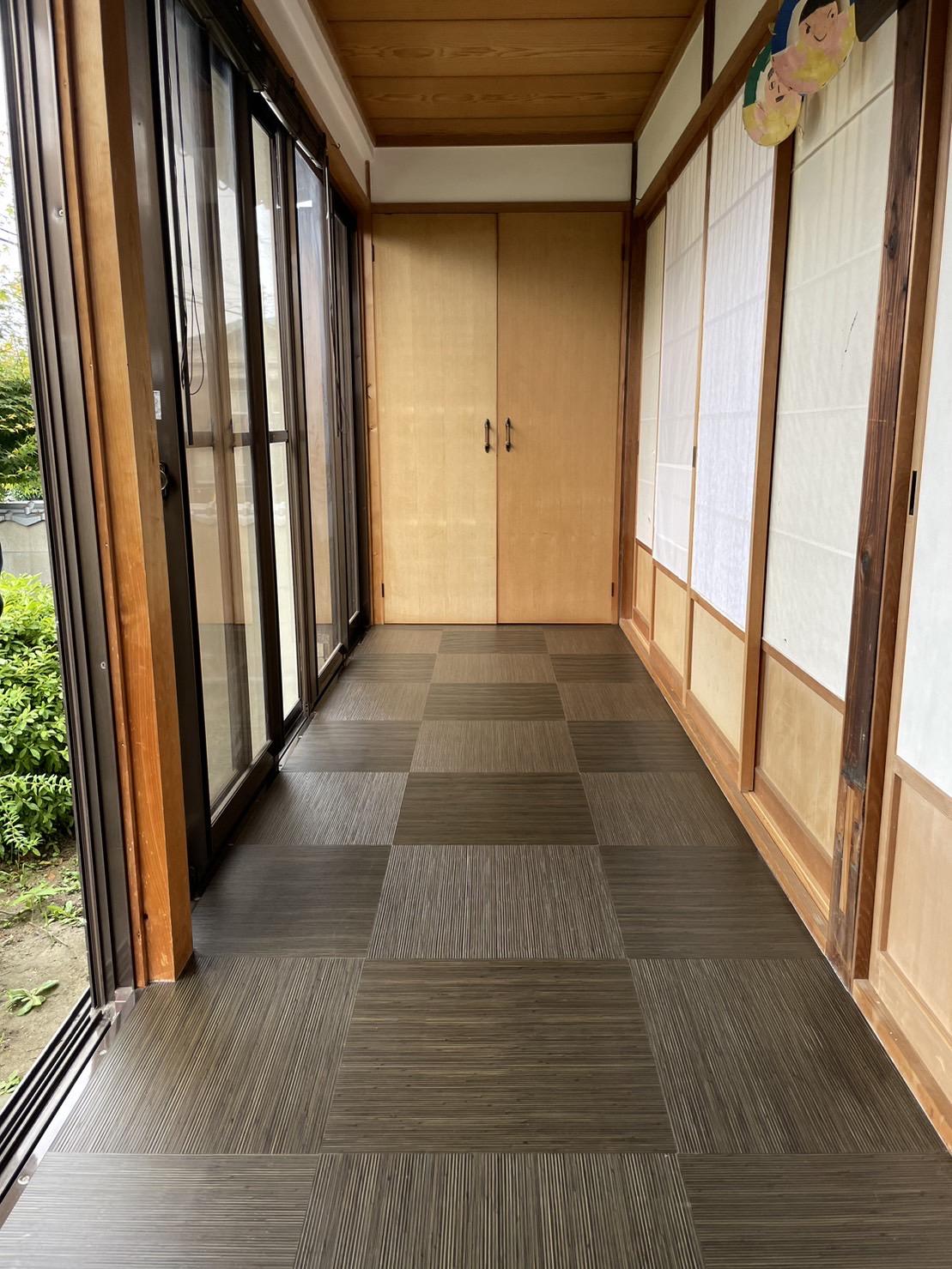 既存の縁側の床が傷んでいる部分は、しっかりと補強工事をおこない、フロアタイルを上貼りして仕上げます。