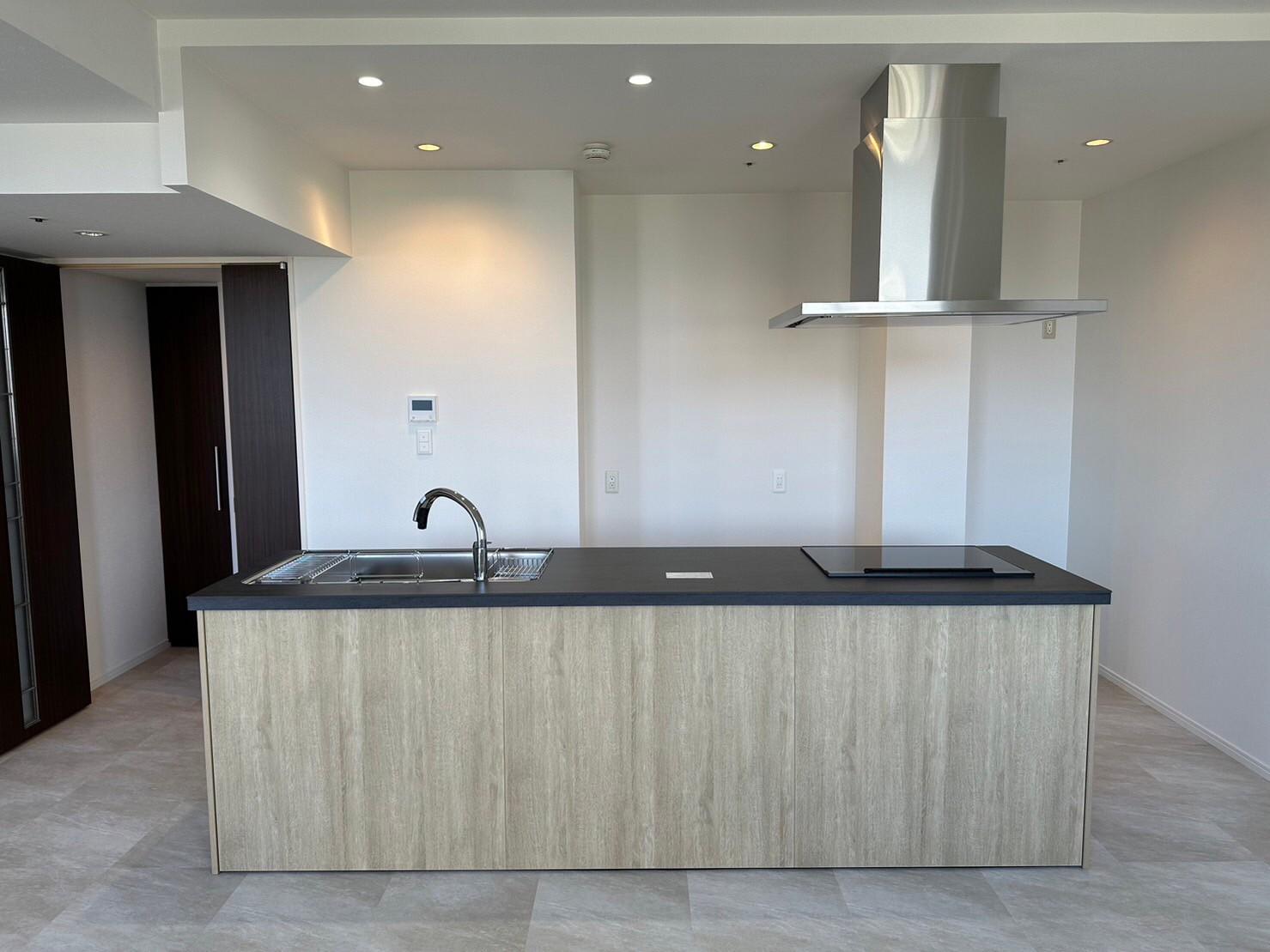 解放感を重視したLIXILの「リシェルSI」にリフォームしました。ワークトップは最新のセラミック技術から生まれた 「セラミックトップ」。お色はバサルトブラックをお選びいただきました。 焼き物ならではの繊細で味わい深い表情がキッチンを個性的に彩ります。 スッキリとしたデザインのレンジフードと、見た目も美しいタッチレス水栓でスタイリッシュなLDKに仕上がりました。