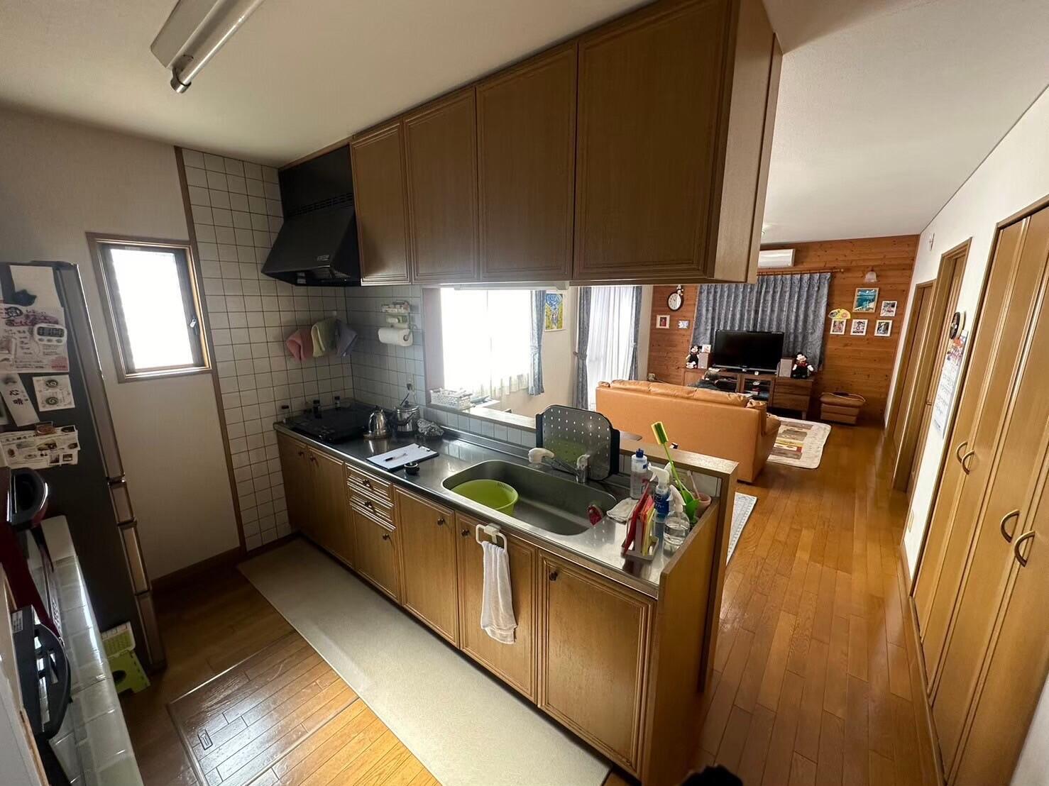 高いところに収納すると手が届かずあまり 使用しないものなどが収納されているかと思います 吊戸棚を撤去することでリビングが 広く見えて開放感のある明るいキッチンになりました