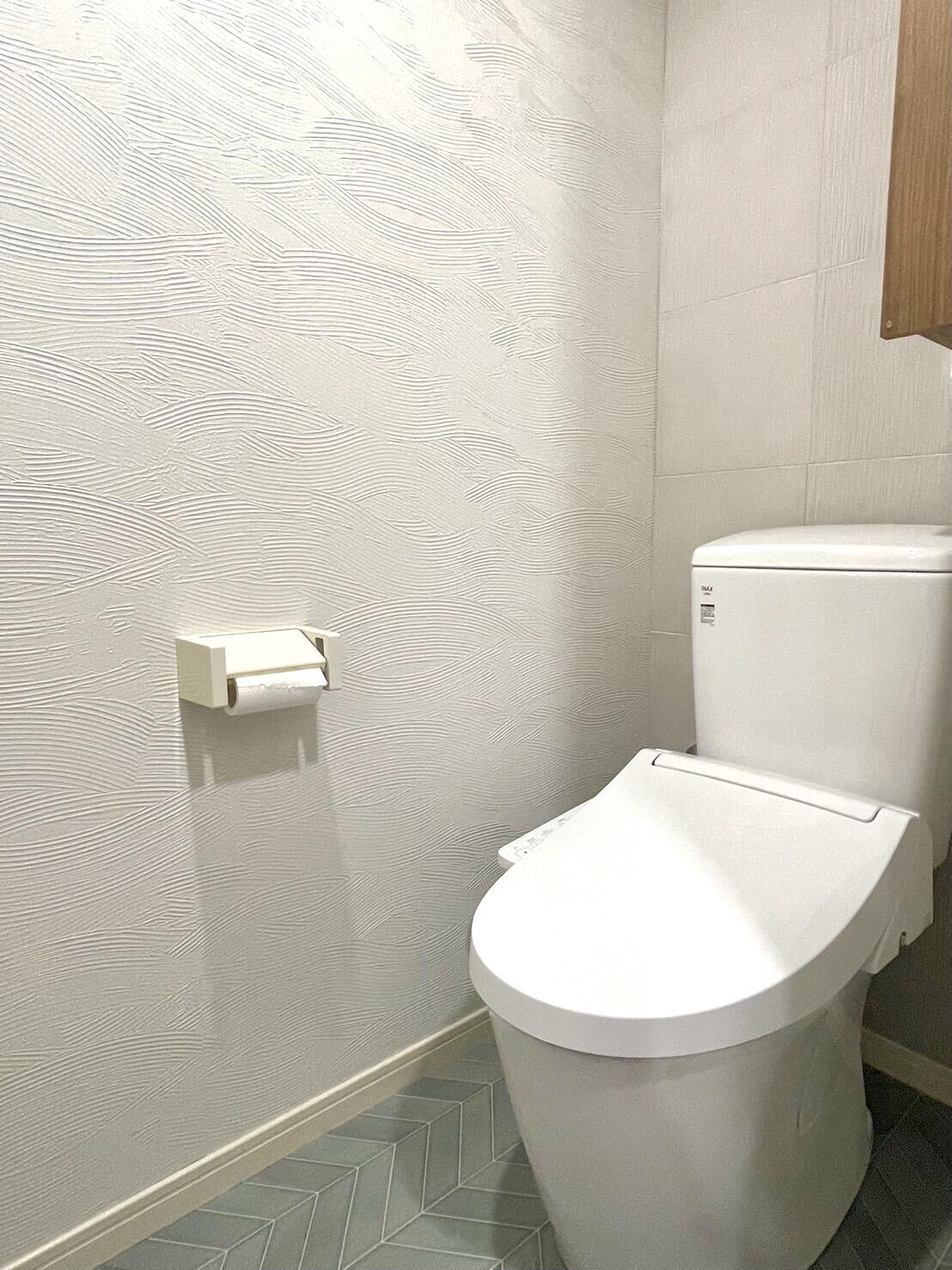 今回のリフォームではトイレ後方の壁にエコカラットを施工し、空間のアクセントに。