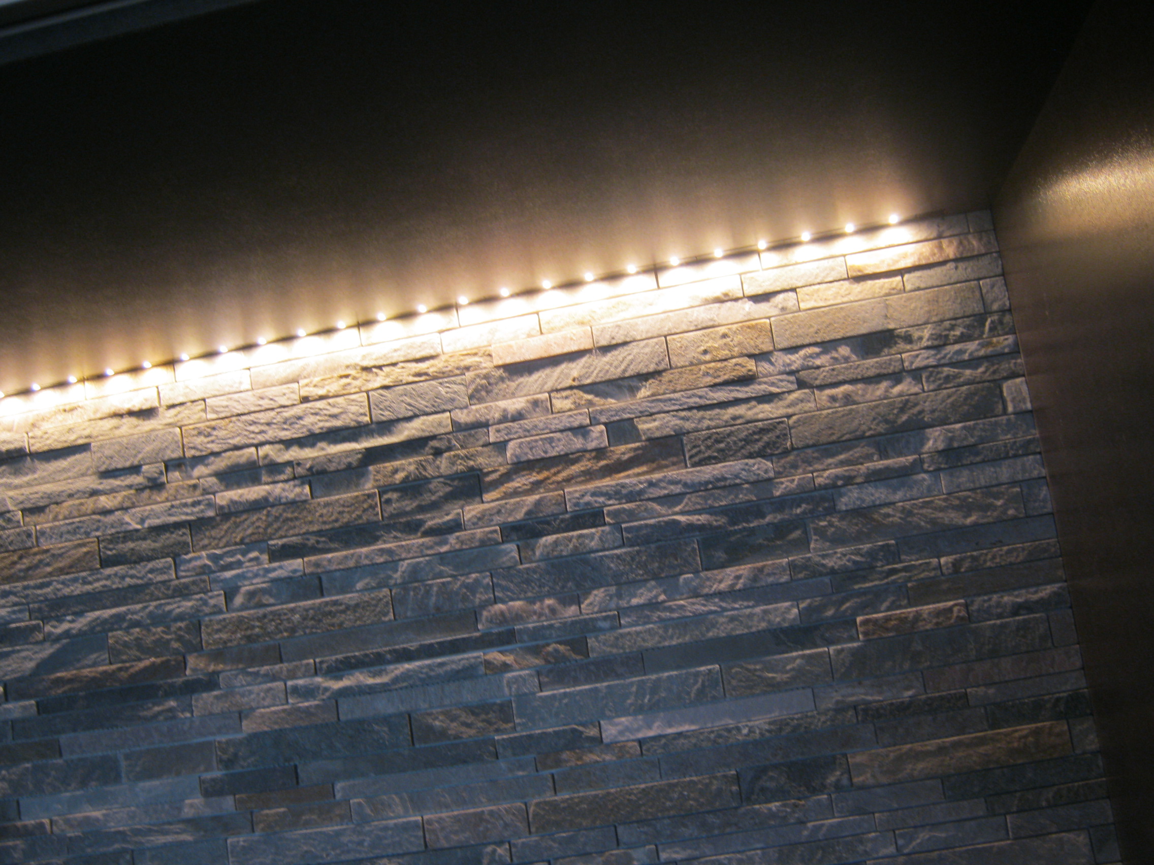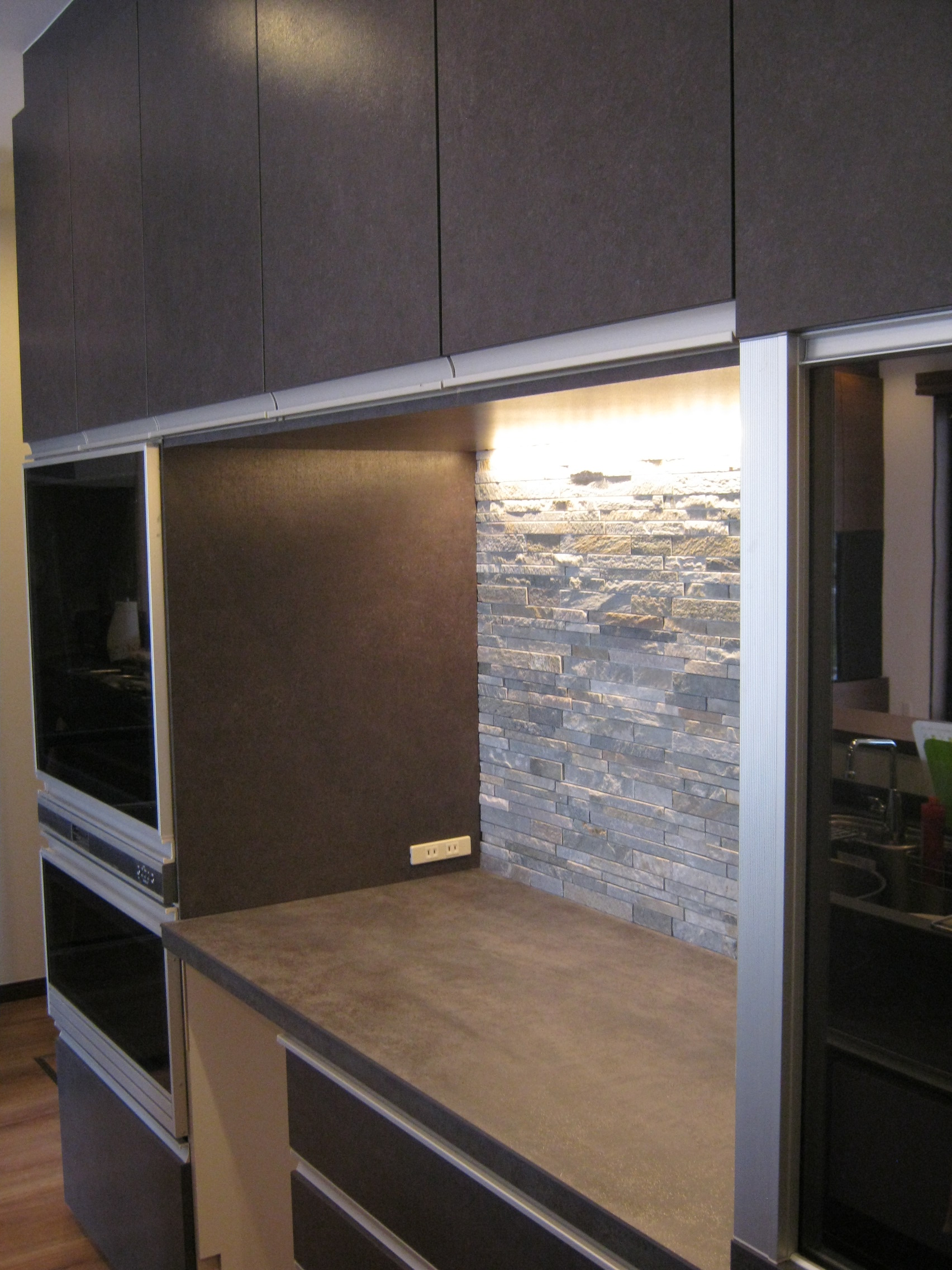 置き場所に困る家電製品を1カ所にまとめてしまえて、更にライン照明を設けたことで、美しく