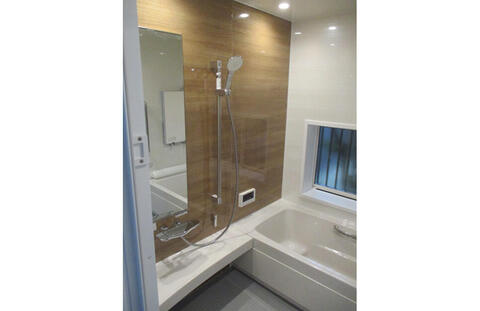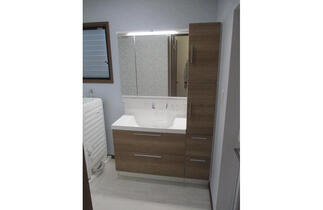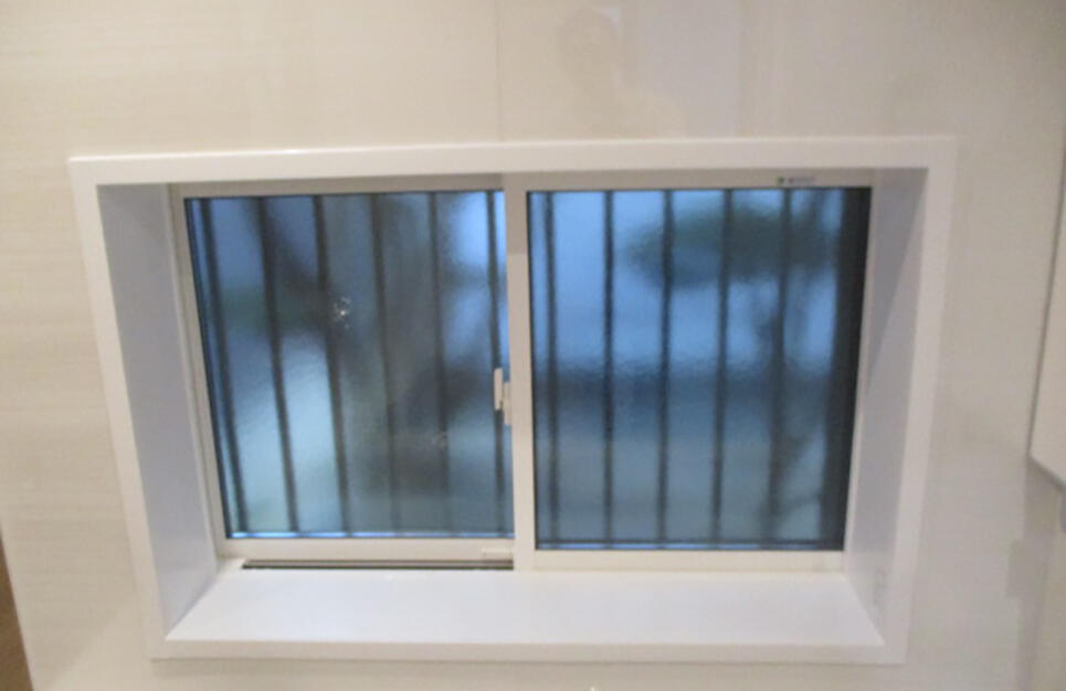 浴室の寒さ対策として、断熱性能の高い窓へ交換(はつり工法)と「スパージュ」のまるごと保温をご提案。洗面化粧台の収納量を増やす目的で、フルスライドタイプにすると同時に、トールキャビネットを追加するようご提案。リビングの寒さ対策として、「インプラス」をご提案。 「浴室の寒さが緩和されるのも楽しみだが、洗面化粧台にトールキャビネットを追加することで収納が増えるのがうれしい」とのことでした。 浴室の既存サッシが全開口サッシであったため、取替品は開口を狭くした。また、サッシ廻りの外壁塗装が天候不良により予定が遅れてしまいましたが、そのほかはスムーズに施工することができました。