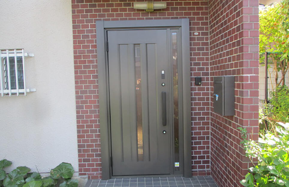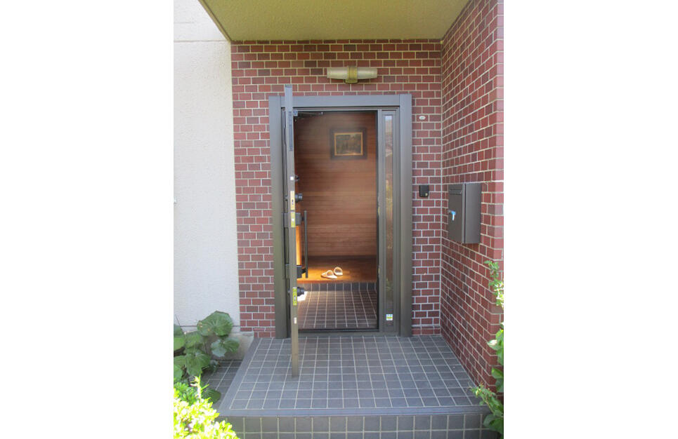 お客様からは費用を抑えたいとご要望があり、玄関リシェントはアルミ仕様、ファミロックを採用いただきました。 ドア交換の際、既存の床面を一部モルタルで補修する工程が必要でしたが、きれいに納めることができました。
