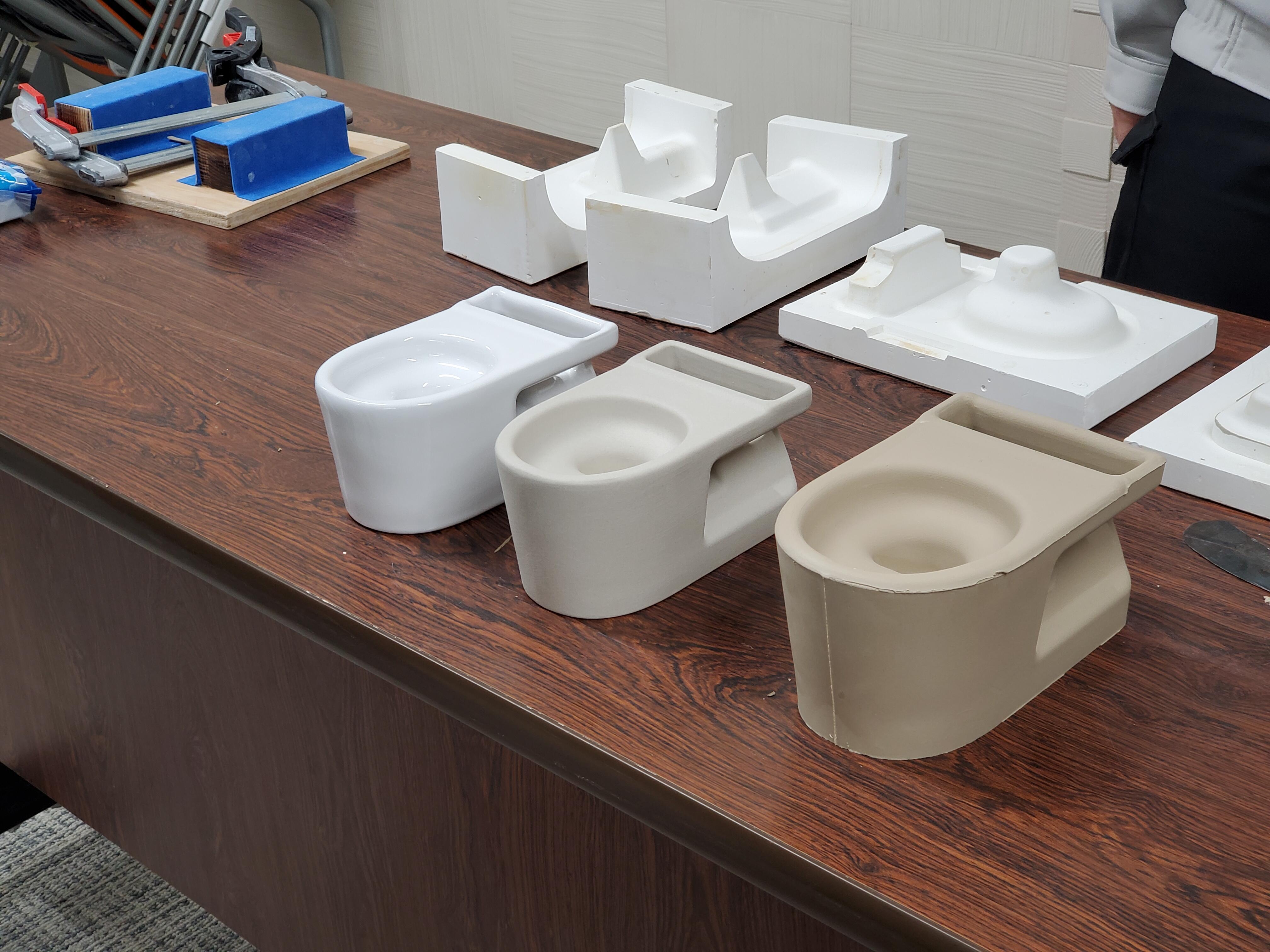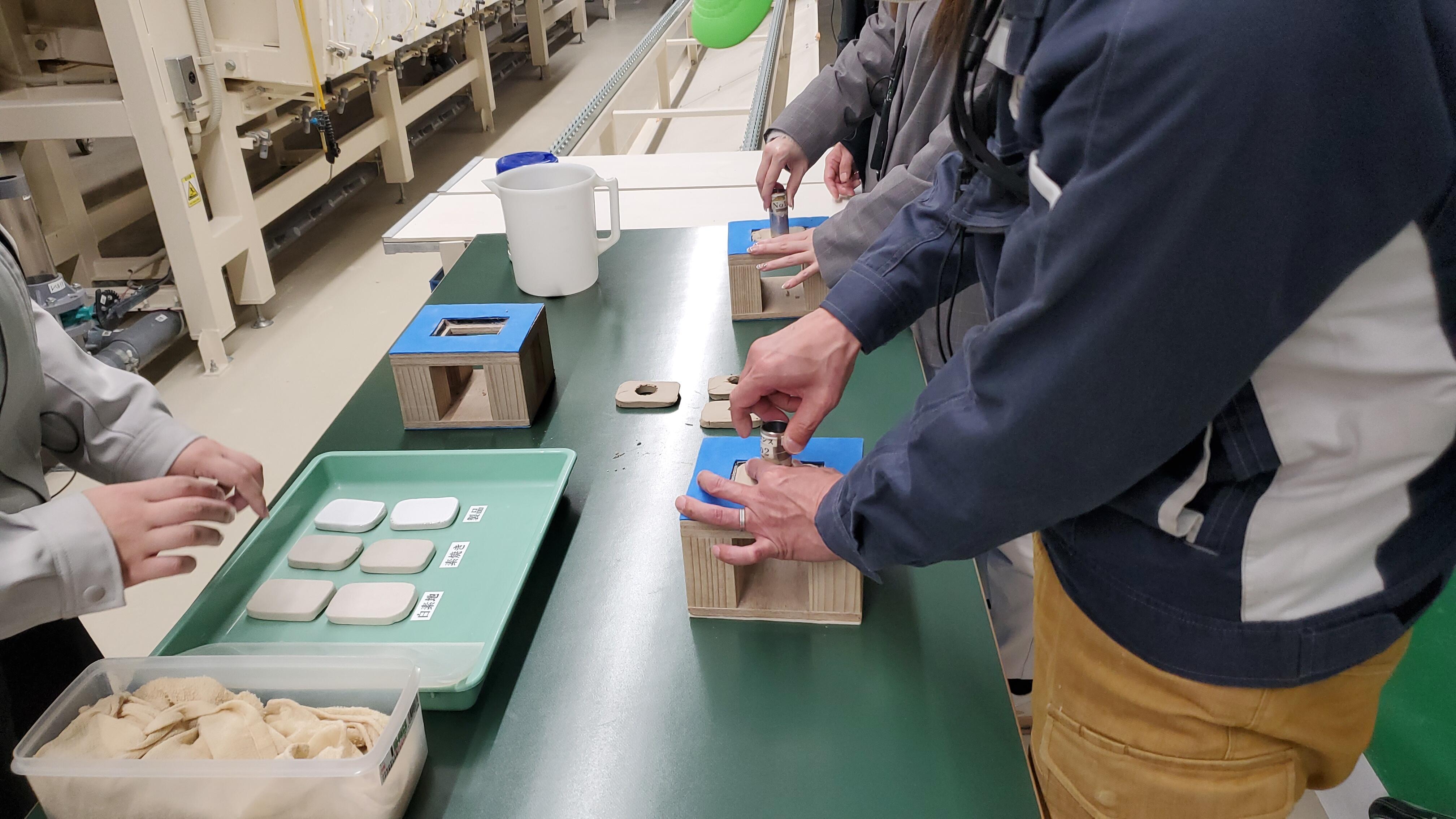 石膏型を使ってミニチュアトイレの製造体験も。