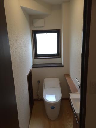 トイレは床の色も明るくなり、以前は手洗付のトイレだったのを別に手洗器をつけて使いやすくしました。