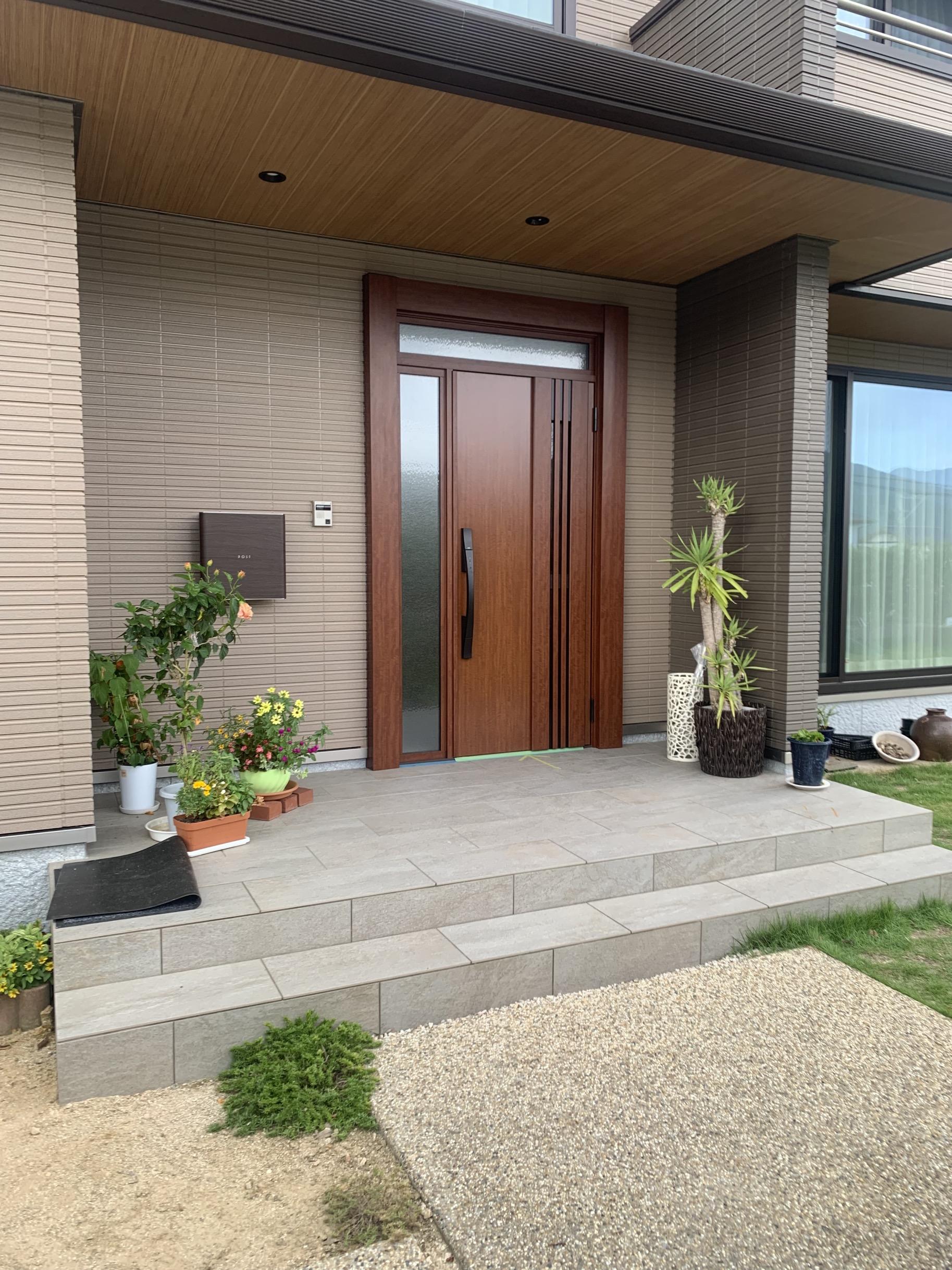 玄関ホールが暗かった為、光を採り込むデザインの玄関ドアに交換しました。
